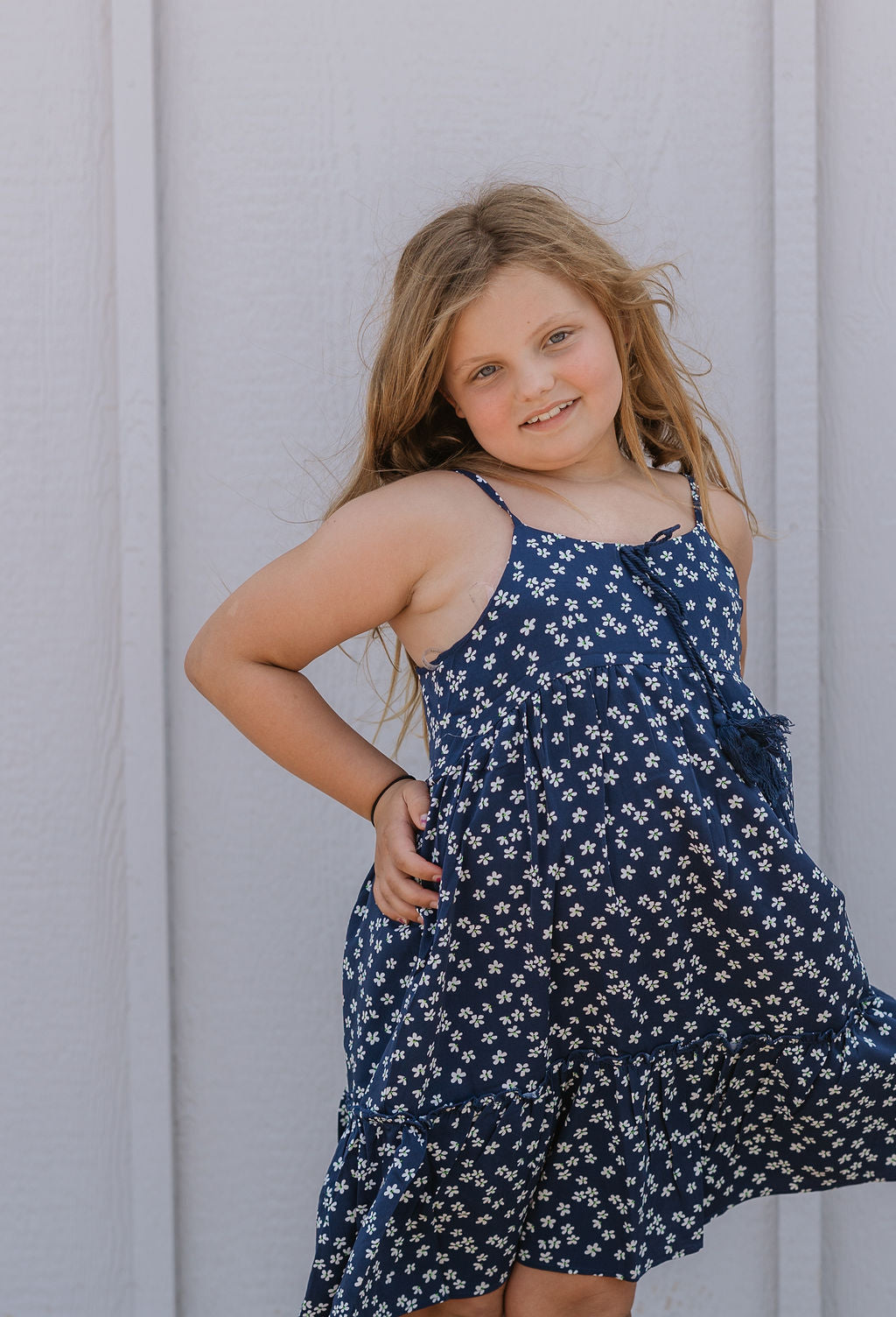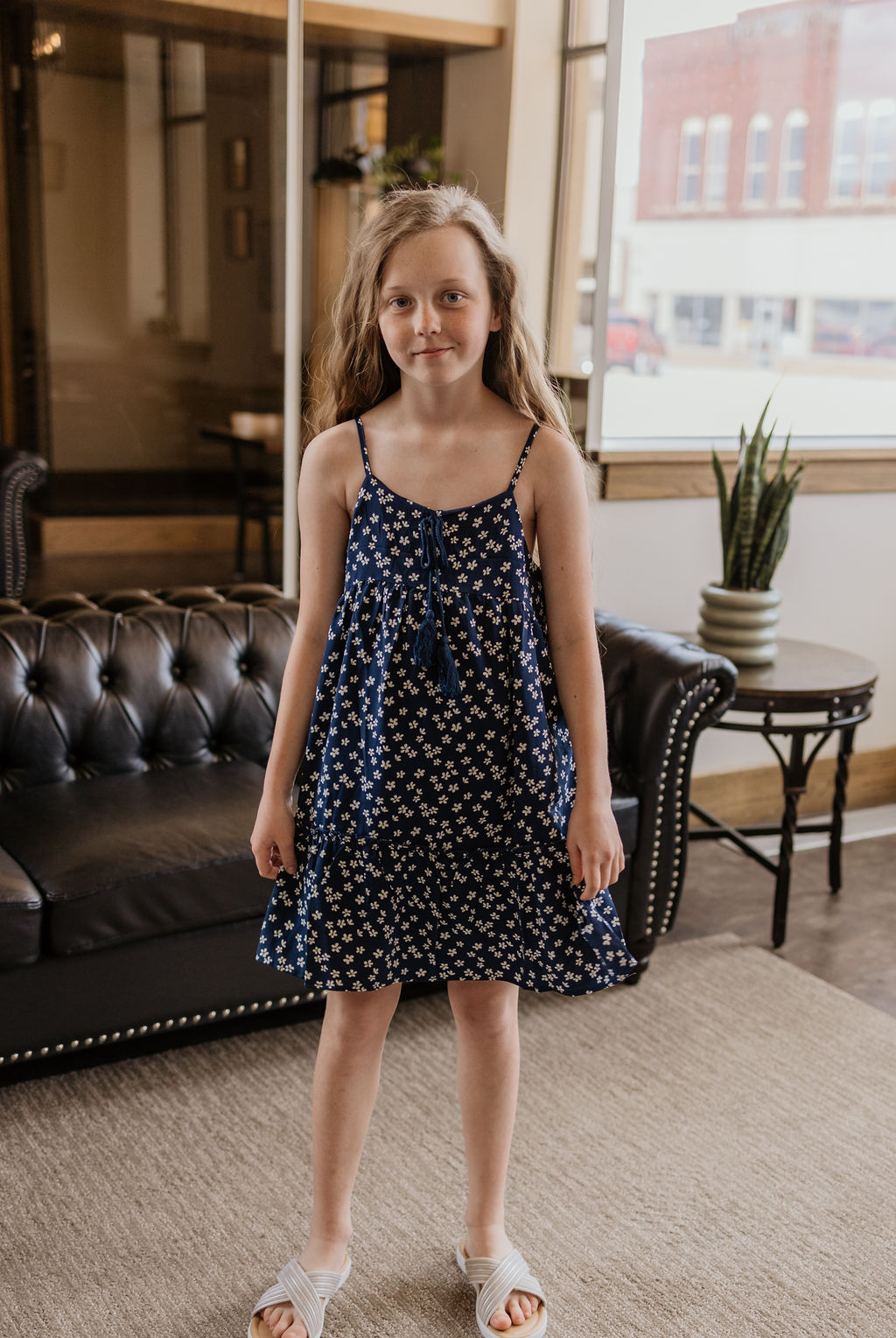 INDIE GIRLS NAVY WITH WHITE FLORAL SPAGHETTI STRAP DRESS