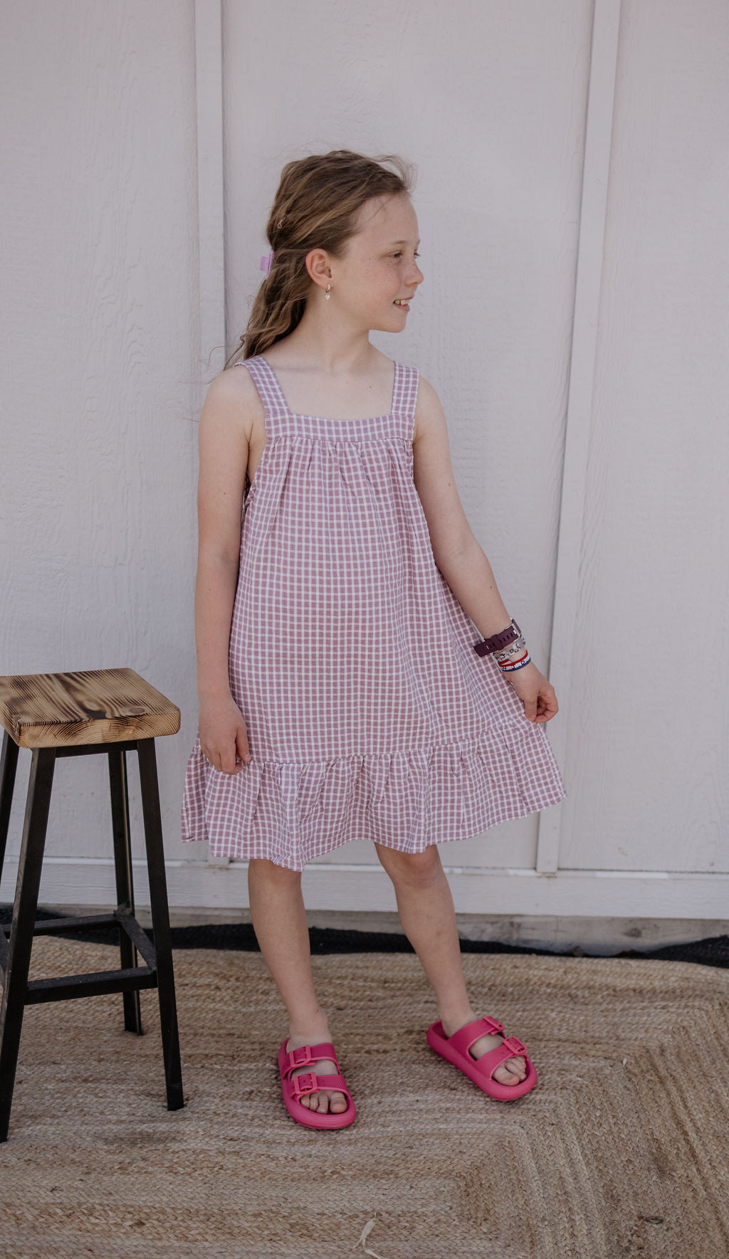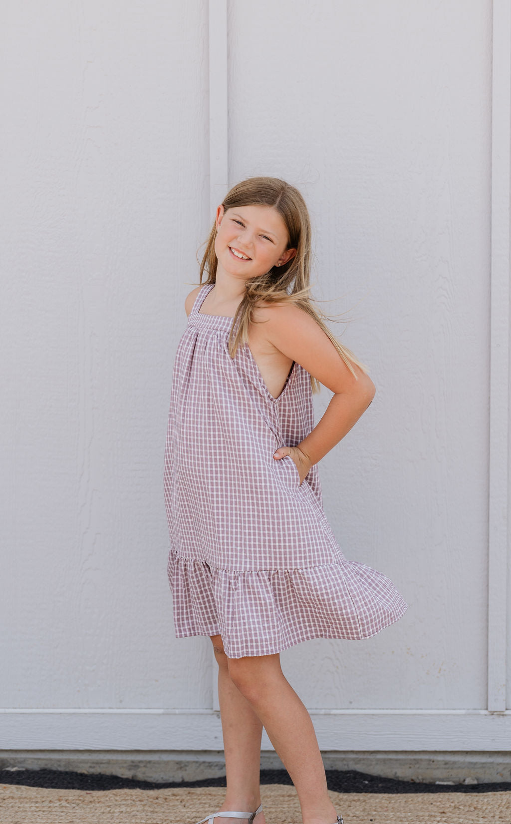 MORGAN GIRLS LAVENDER CHECKERED DRESS