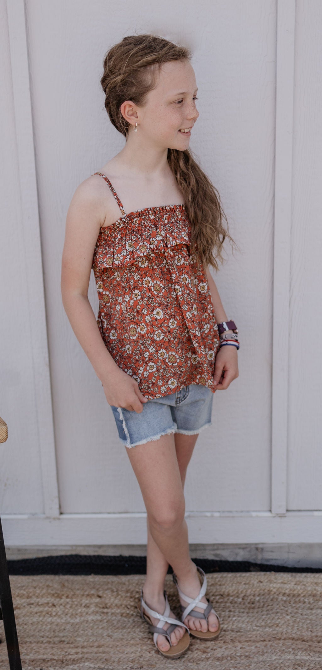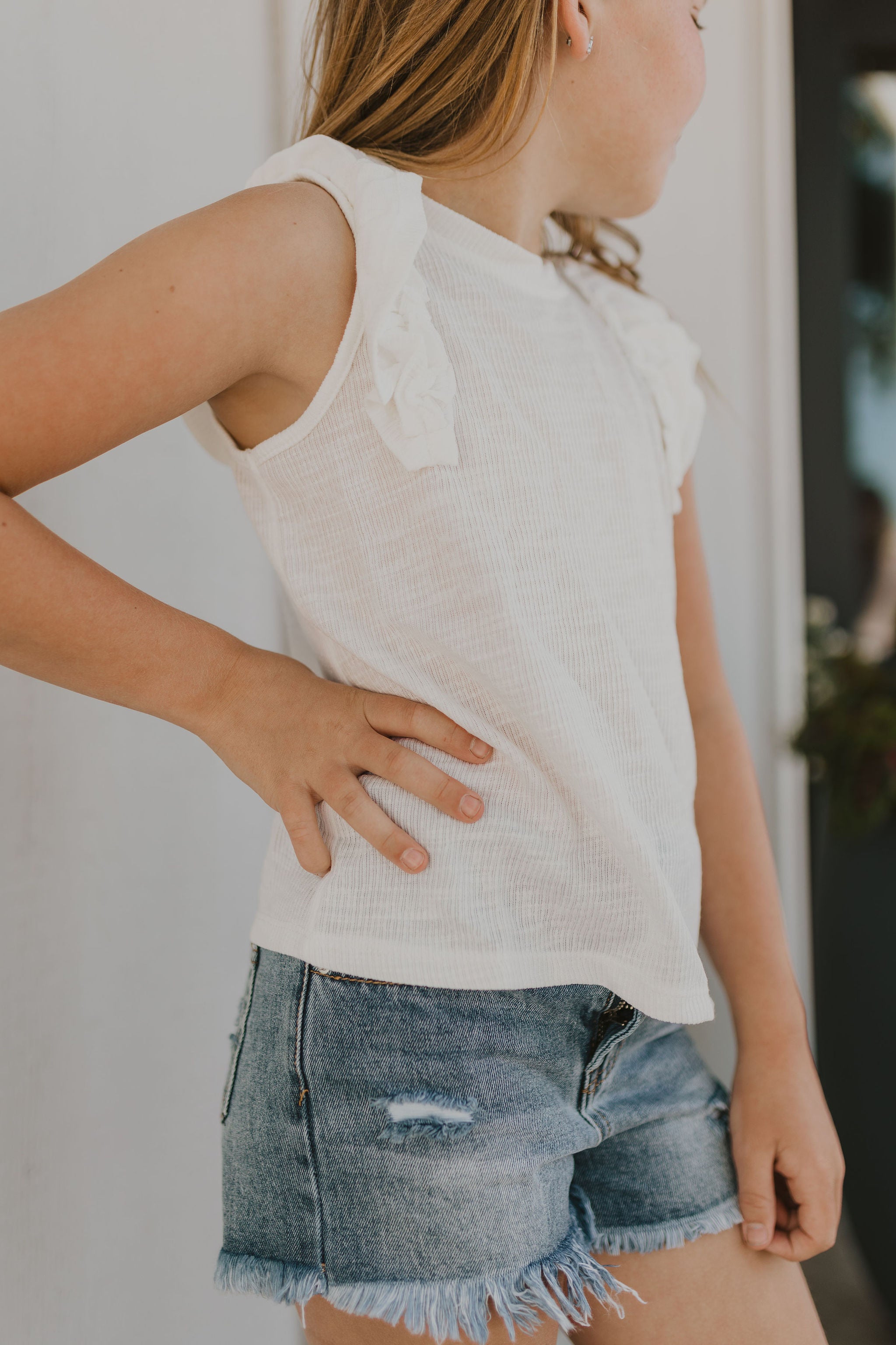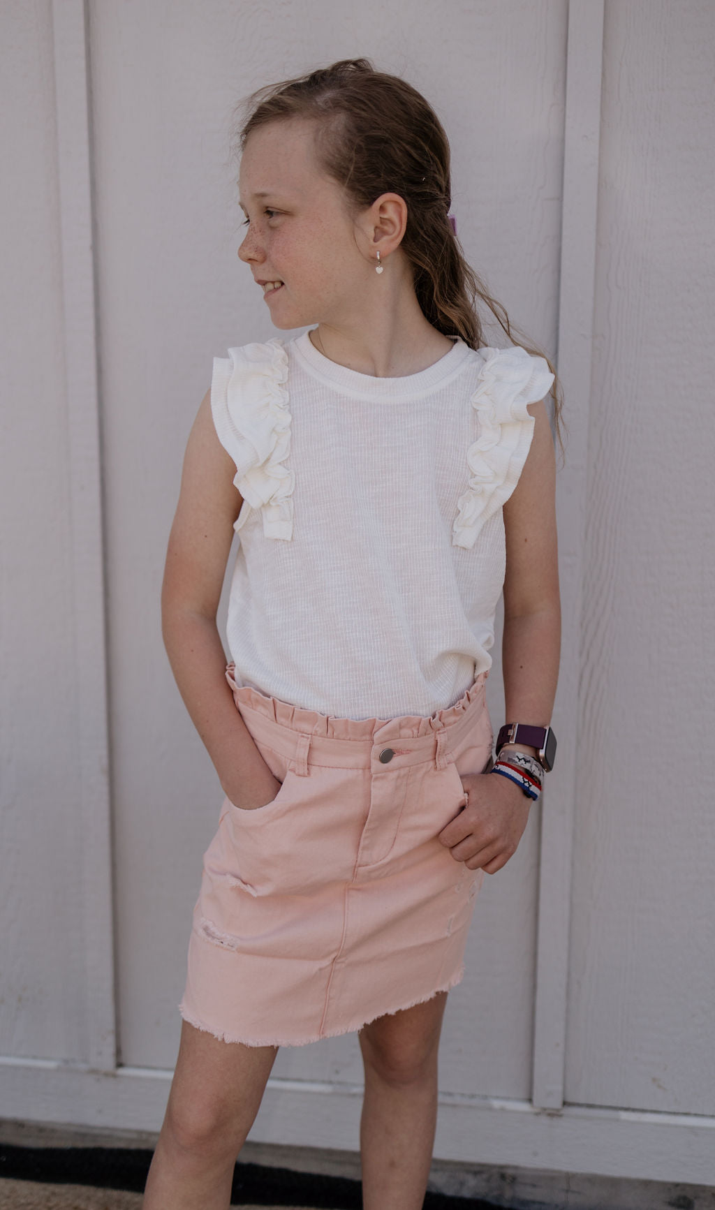 ISABELLA GIRLS SPAGHETTI STRAP RUFFLE TANK 2 COLOR OPTIONS