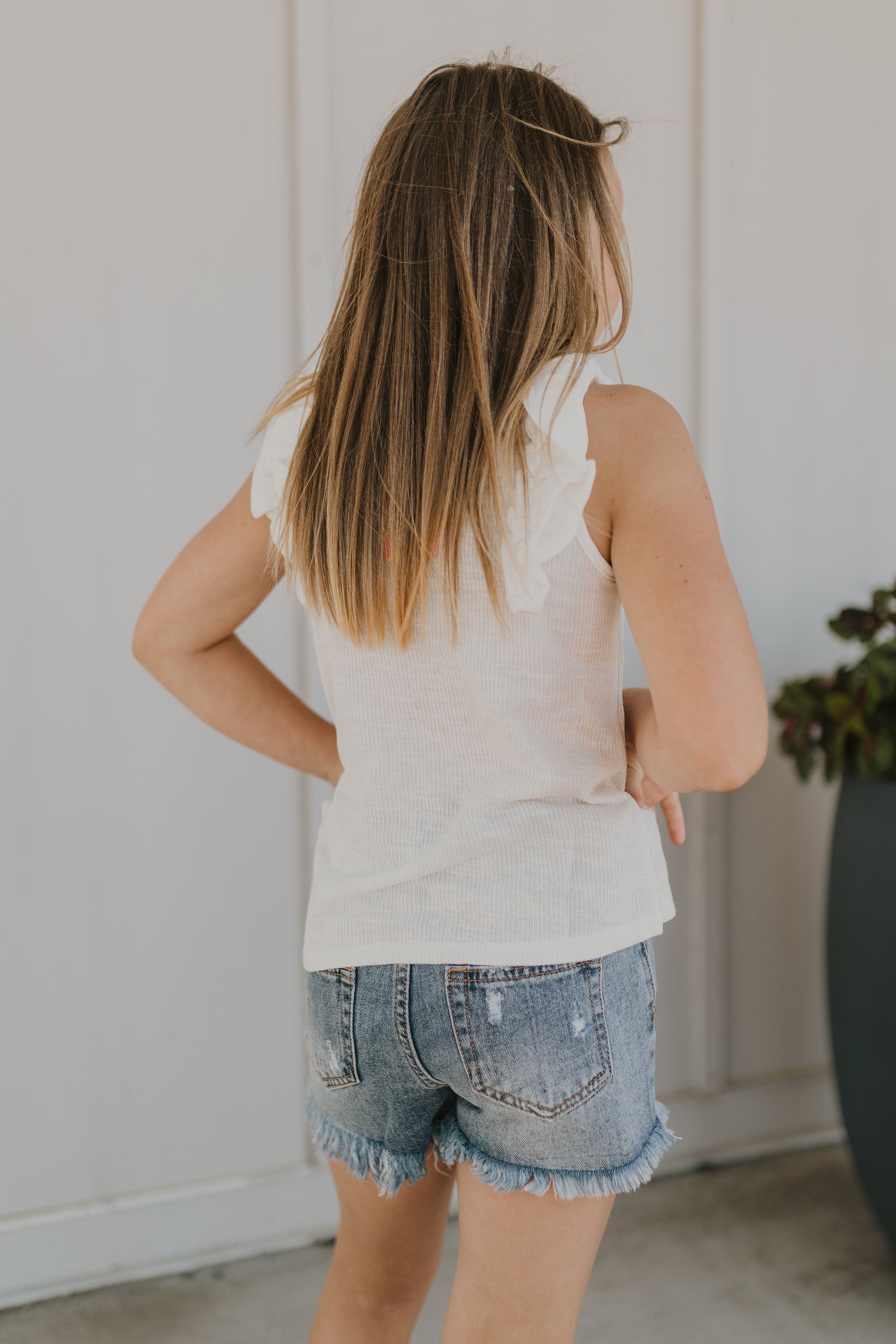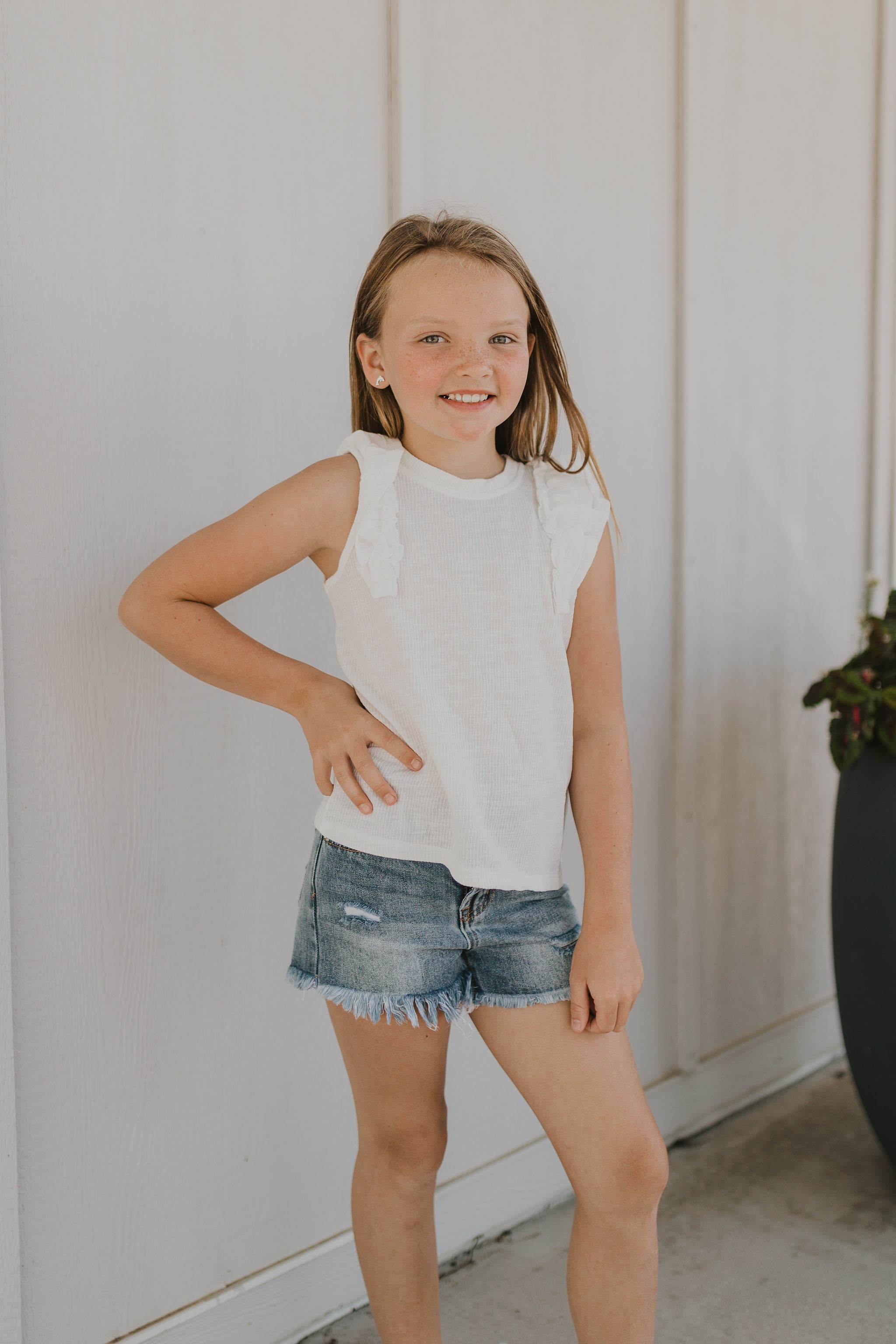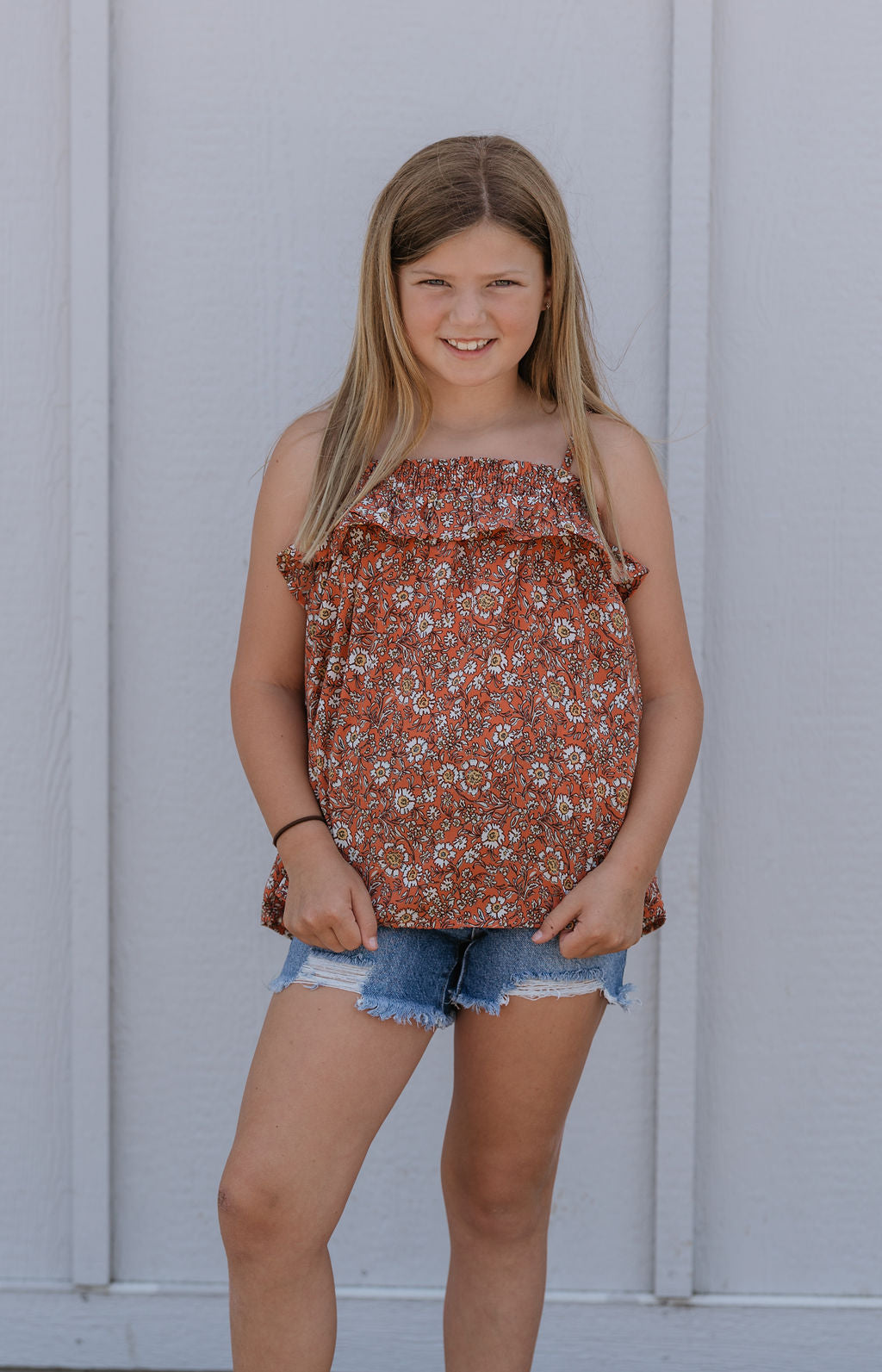 ISABELLA GIRLS SPAGHETTI STRAP RUFFLE TANK 2 COLOR OPTIONS