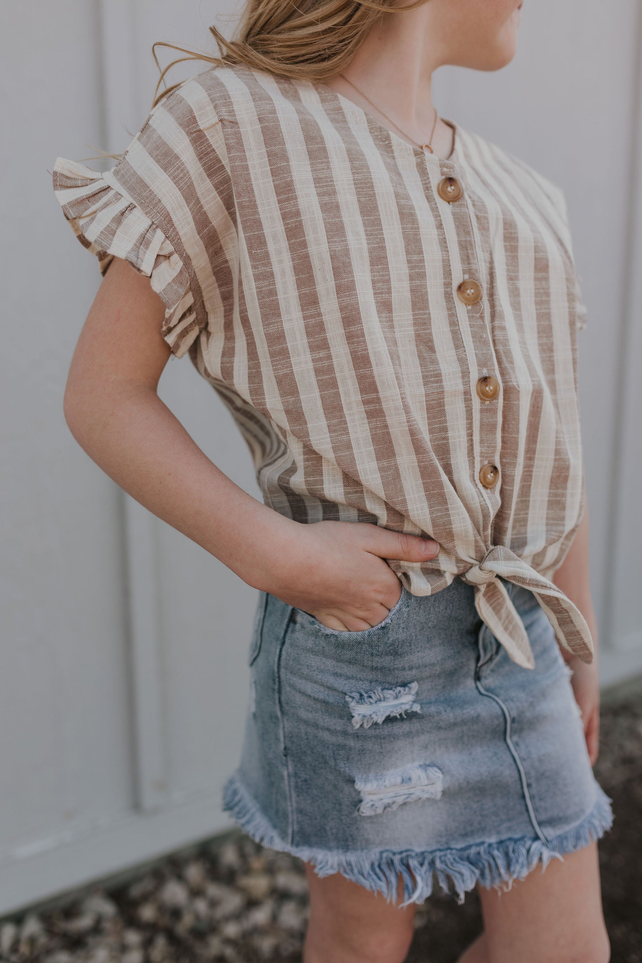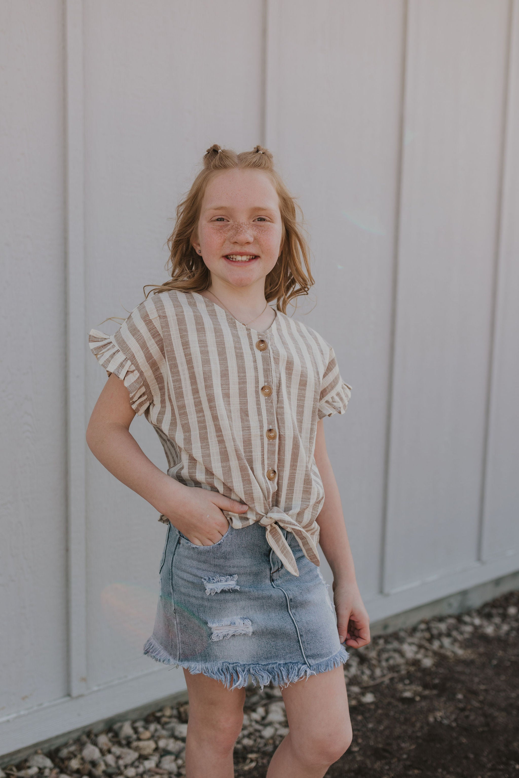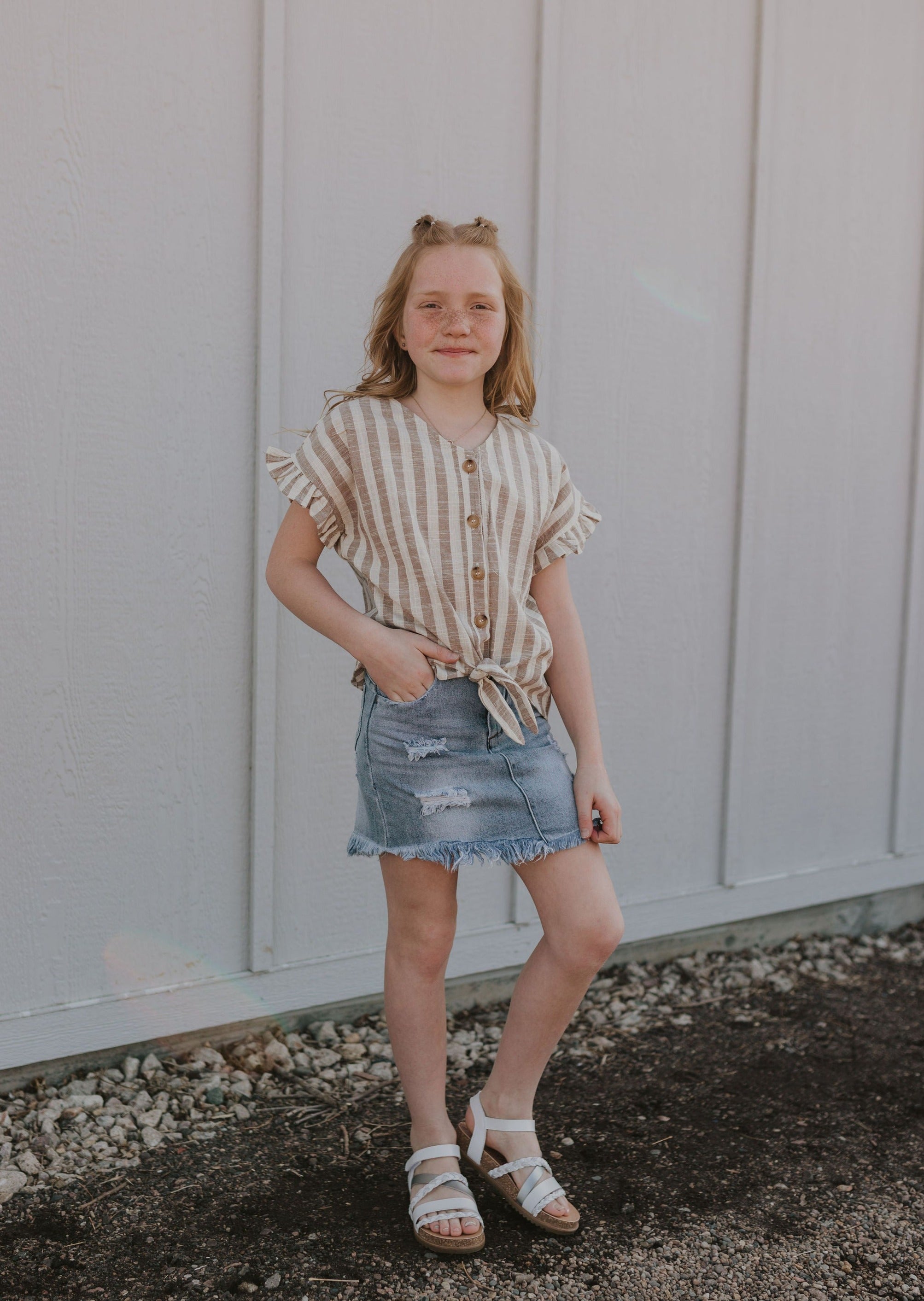 RIELYN GIRLS CORDUROY BUTTON DOWN TOP