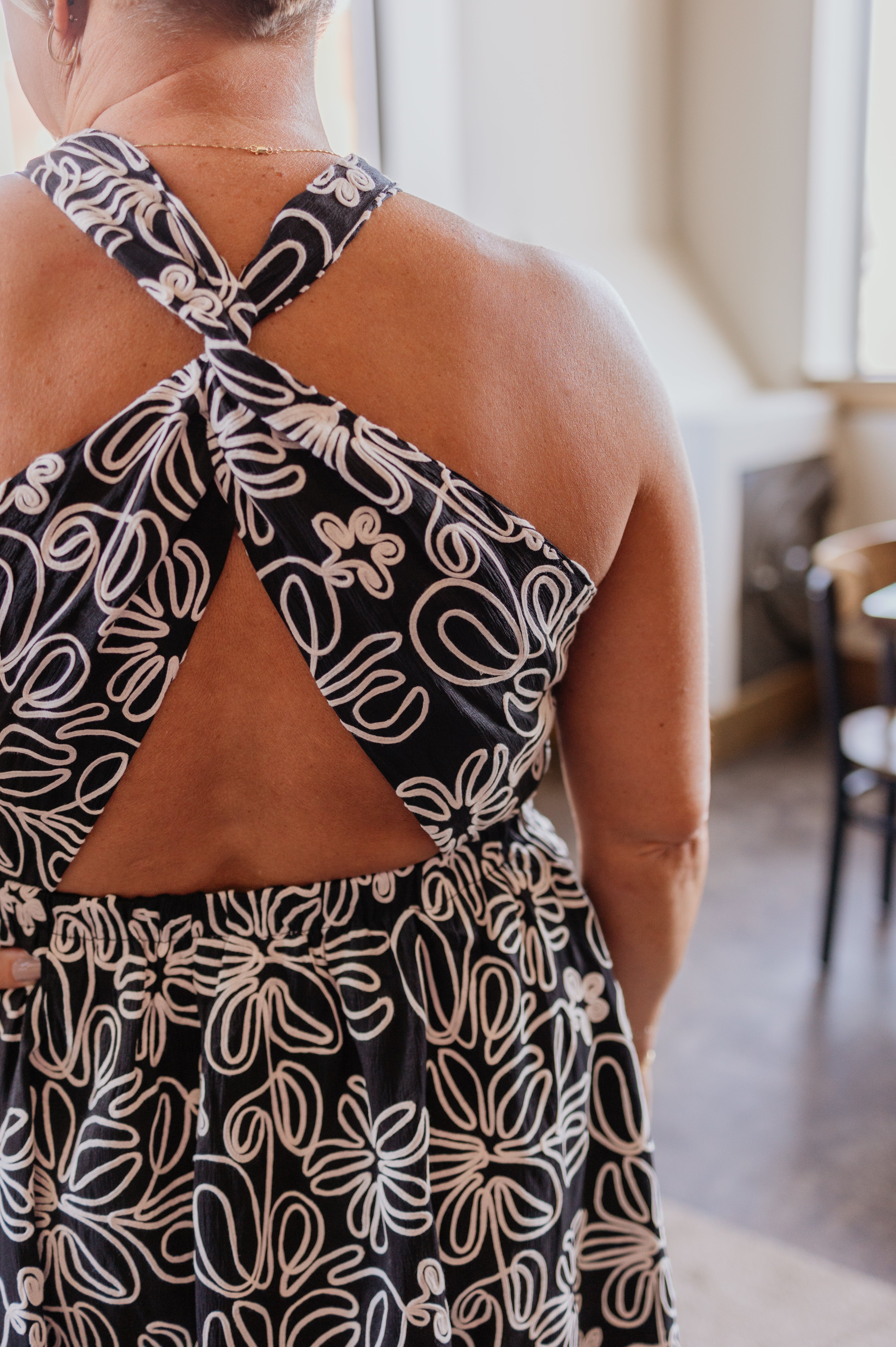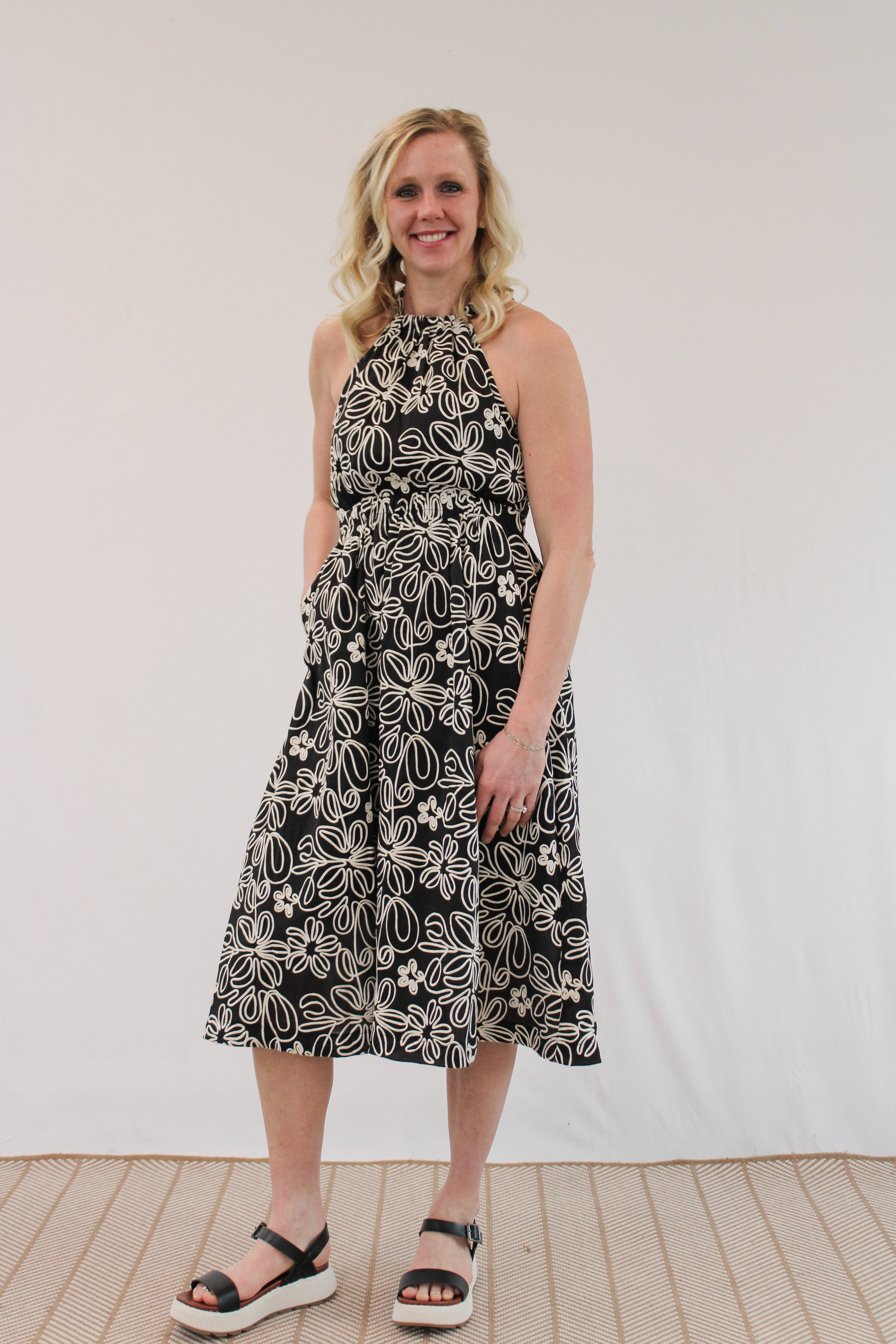 GRACIA ABSTRACT HALTER TIERED MIDI DRESS