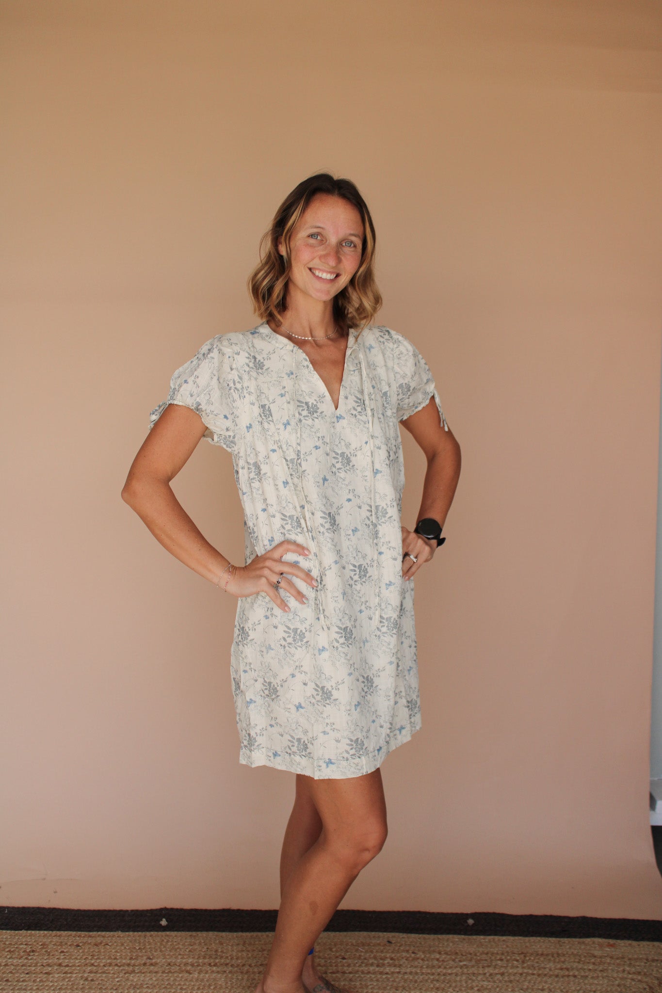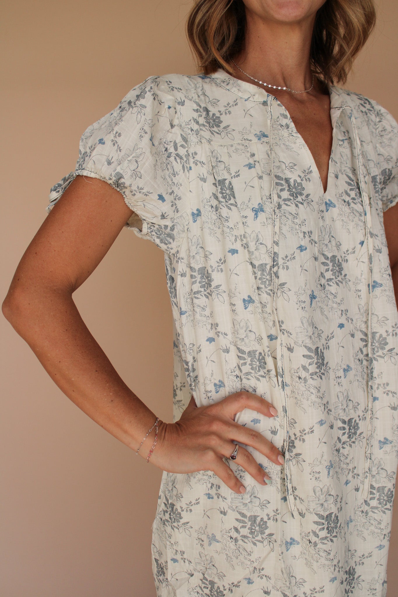 FLORA PRINTED SPLIT V-NECK PUFF SHORT DRESS