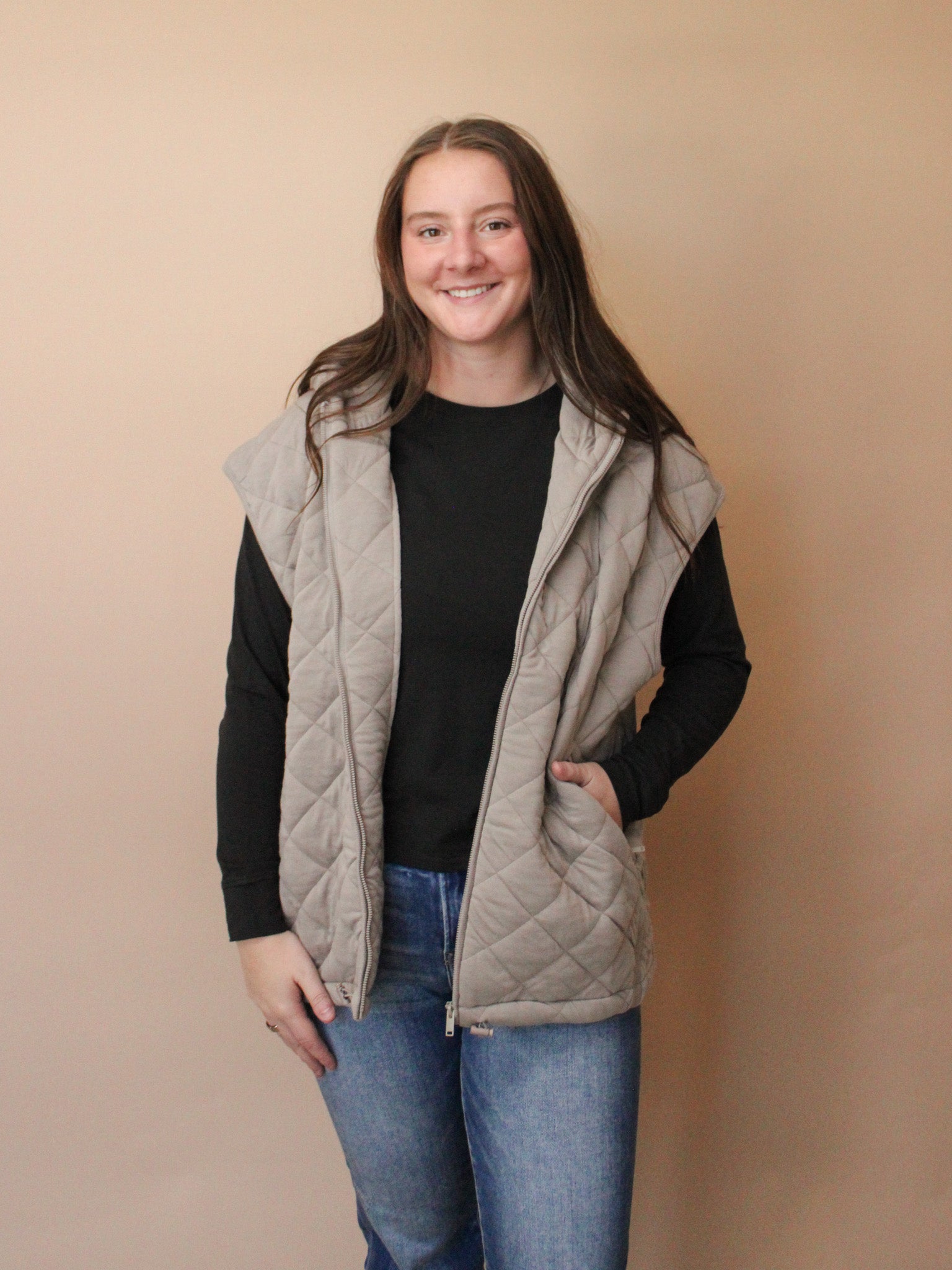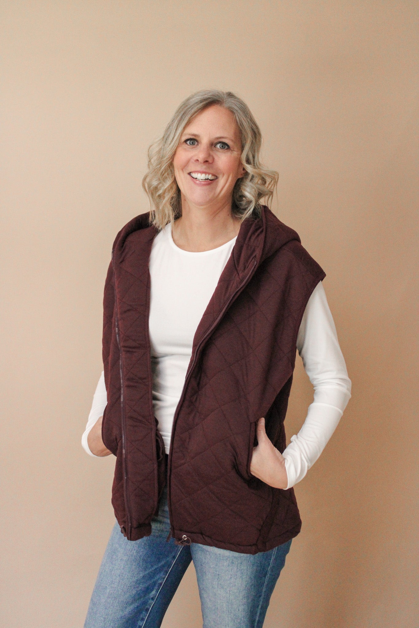 The Gracie Quilted Hoodie Vest is your new layering obsession! This longer-length beauty features a gorgeous quilted design that adds texture and dimension to any outfit. Crafted from a comfy blend of 78% polyester, 18% cotton, and 4% spandex, it moves with you while keeping its shape. Perfect for throwing over your favorite tees, sweaters, or dresses—it's the versatile piece that makes getting dressed way more fun.