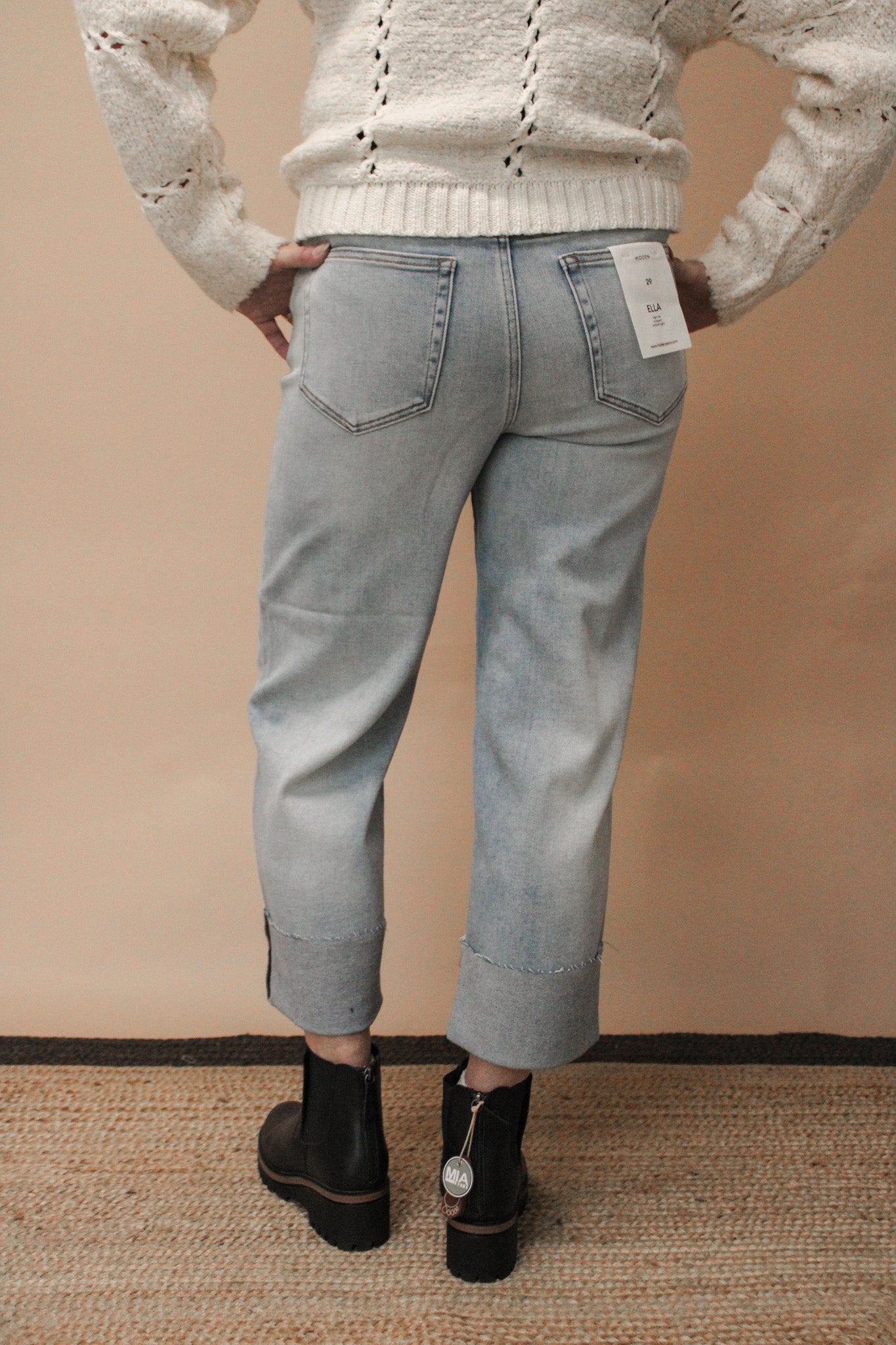 Meet your new denim obsession! The Vintage Ella High Rise Wide Straight Jean is here to serve retro vibes with a modern twist. Crafted from a premium cotton-blend fabric (93% cotton, 5% polyester, 2% spandex), these jeans offer the perfect balance of structure and stretch. Rock the bold 4" wide cuff for that authentic vintage aesthetic, or uncuff them for a sleek, elongated silhouette. With an 11" rise and available inseams of 26" (cuffed) or 30" (uncuffed), they're designed to flatter and feel amazing. Whether you're channeling '90s nostalgia or creating your own style story, these jeans are ready to become your go-to favorite.