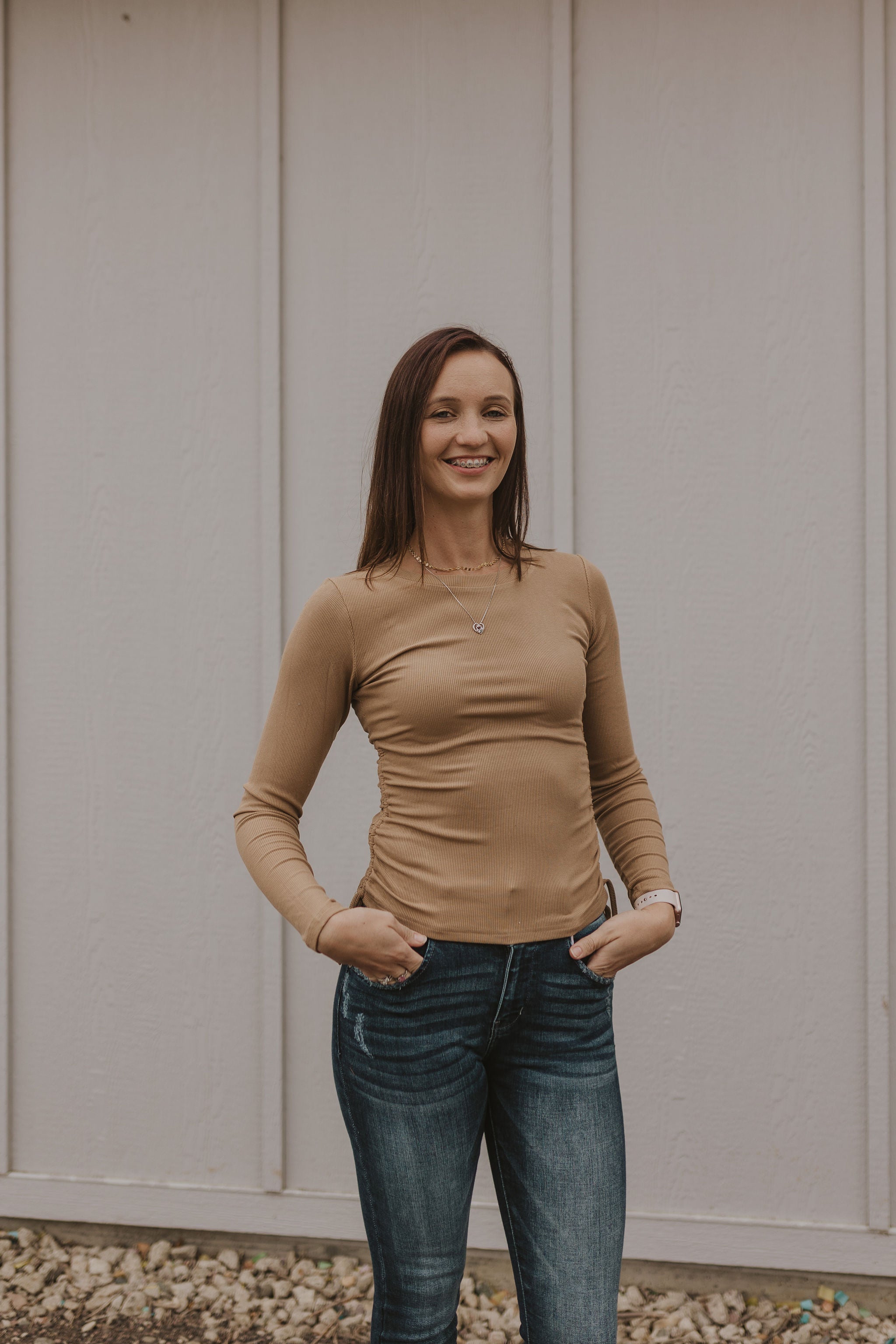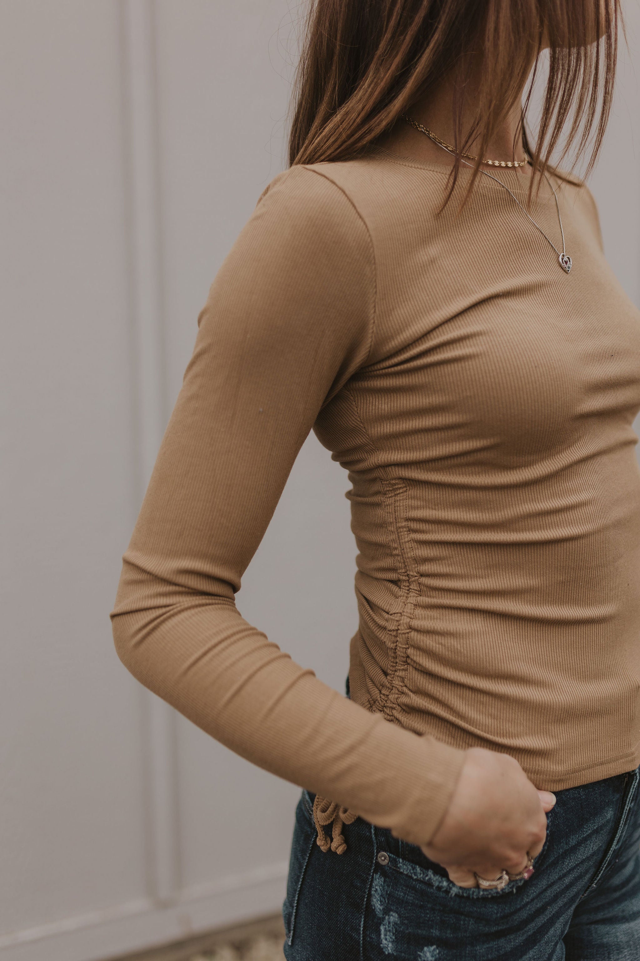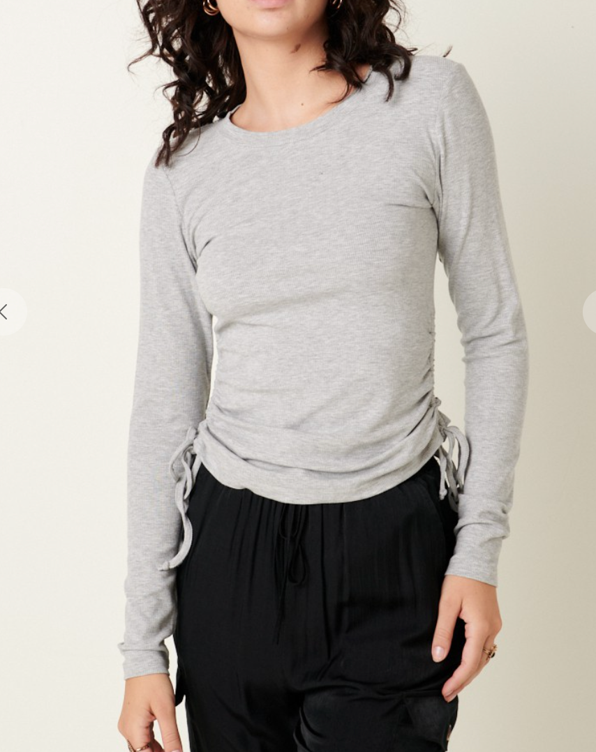 SHAELA RIBBED CINCH SIDE LONG SLEEVE TOP