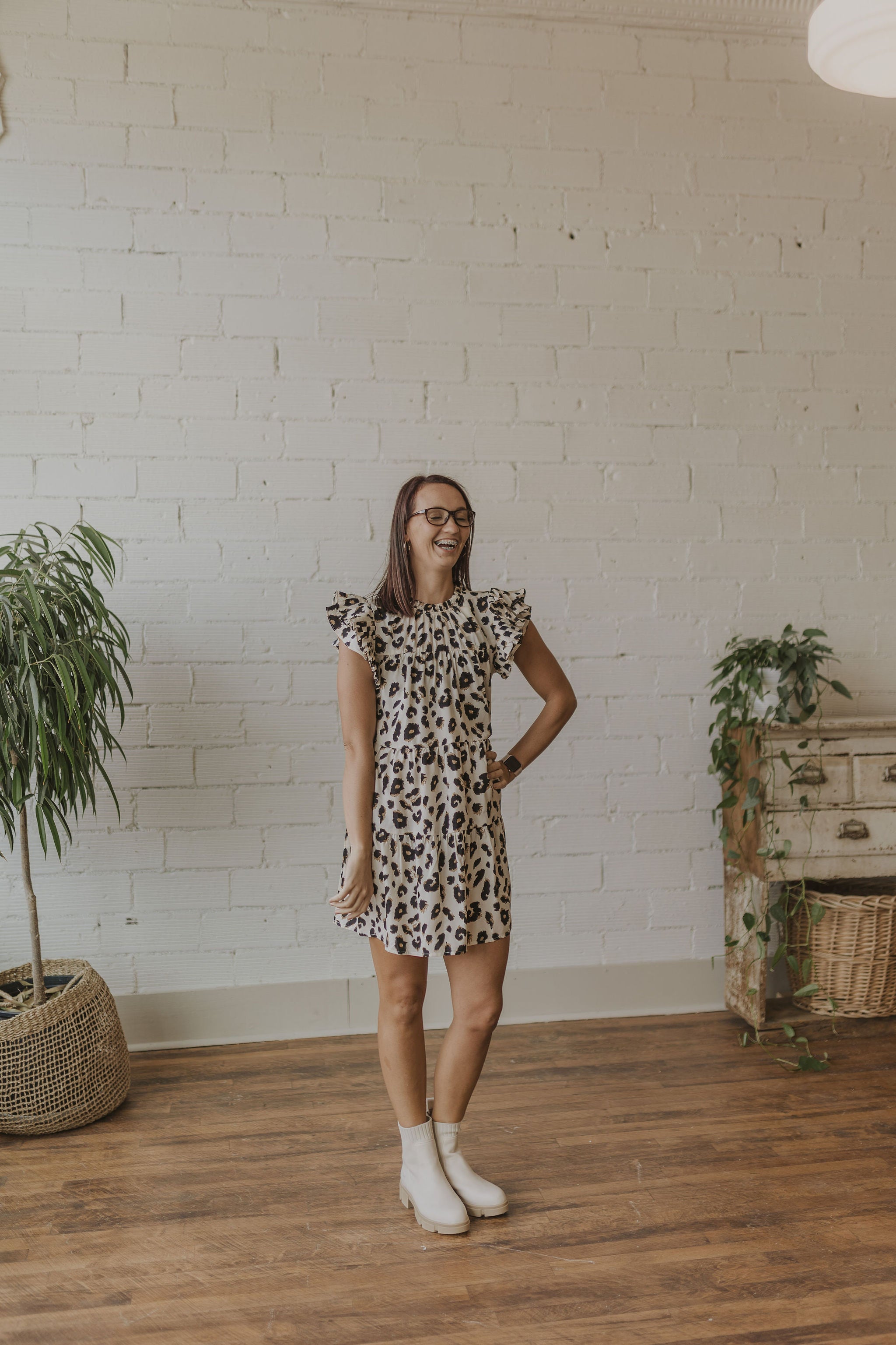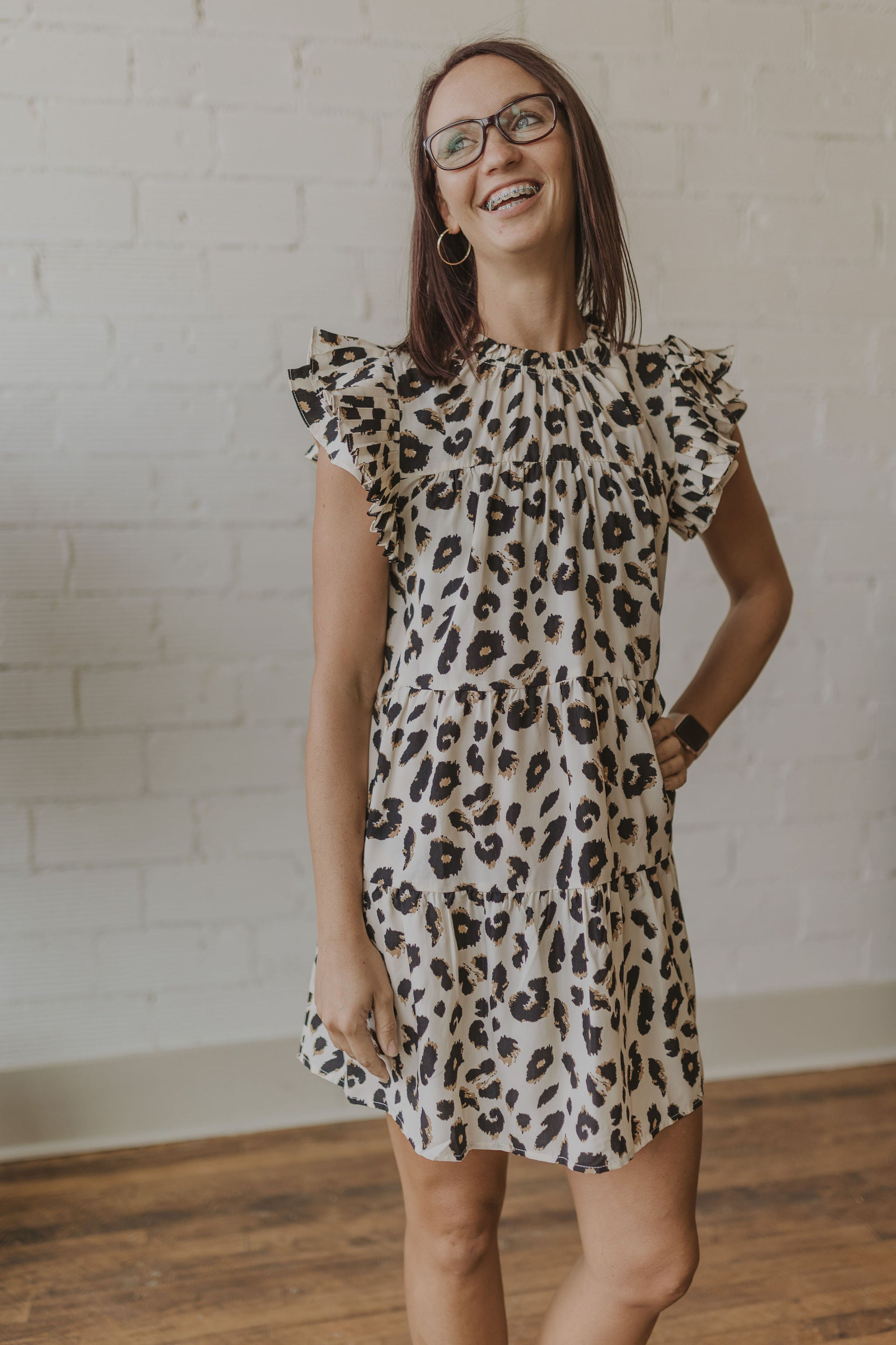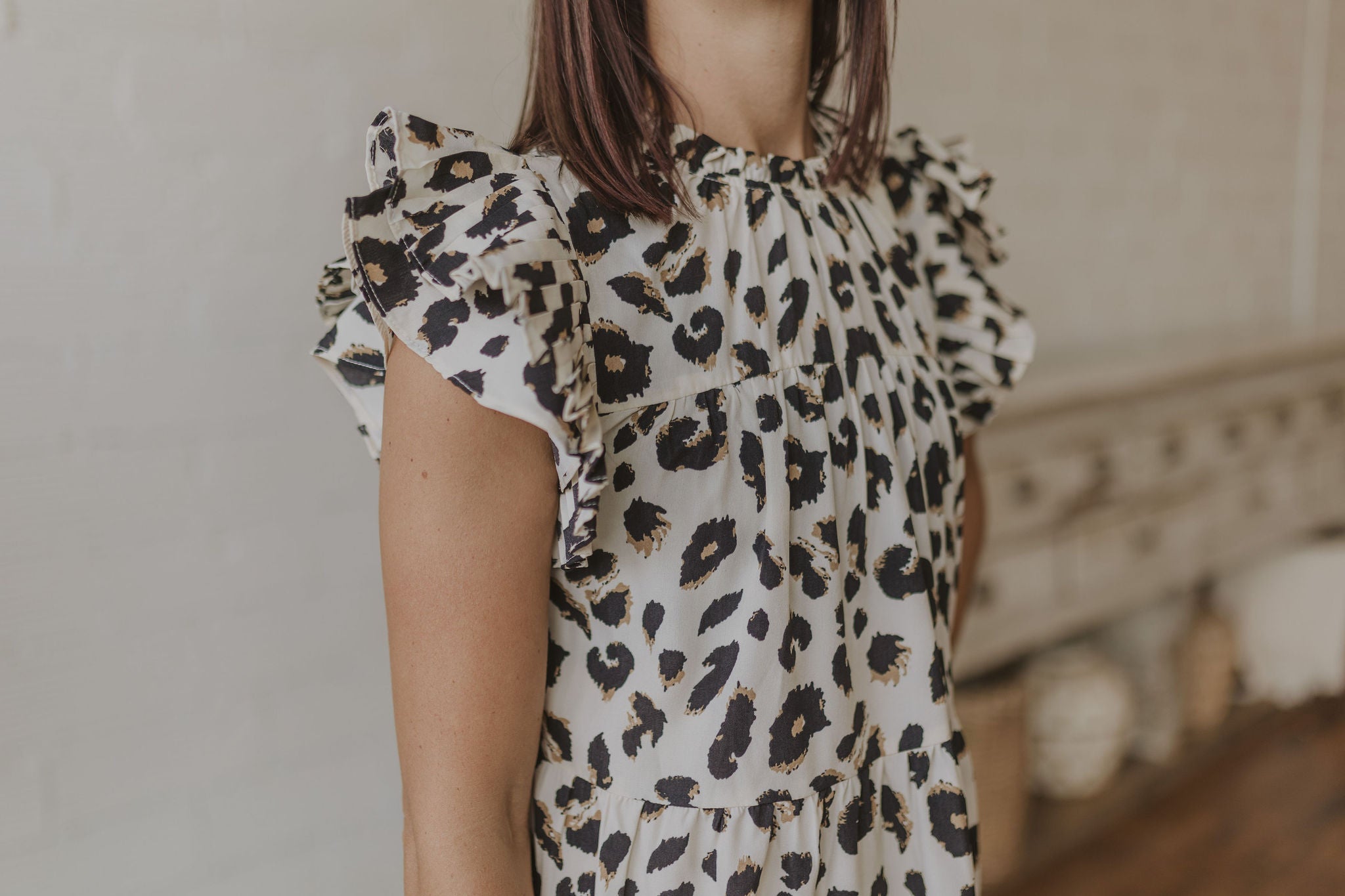 NATOSHA LEOPARD PRINT RUFFLE SLEEVE TANK DRESS