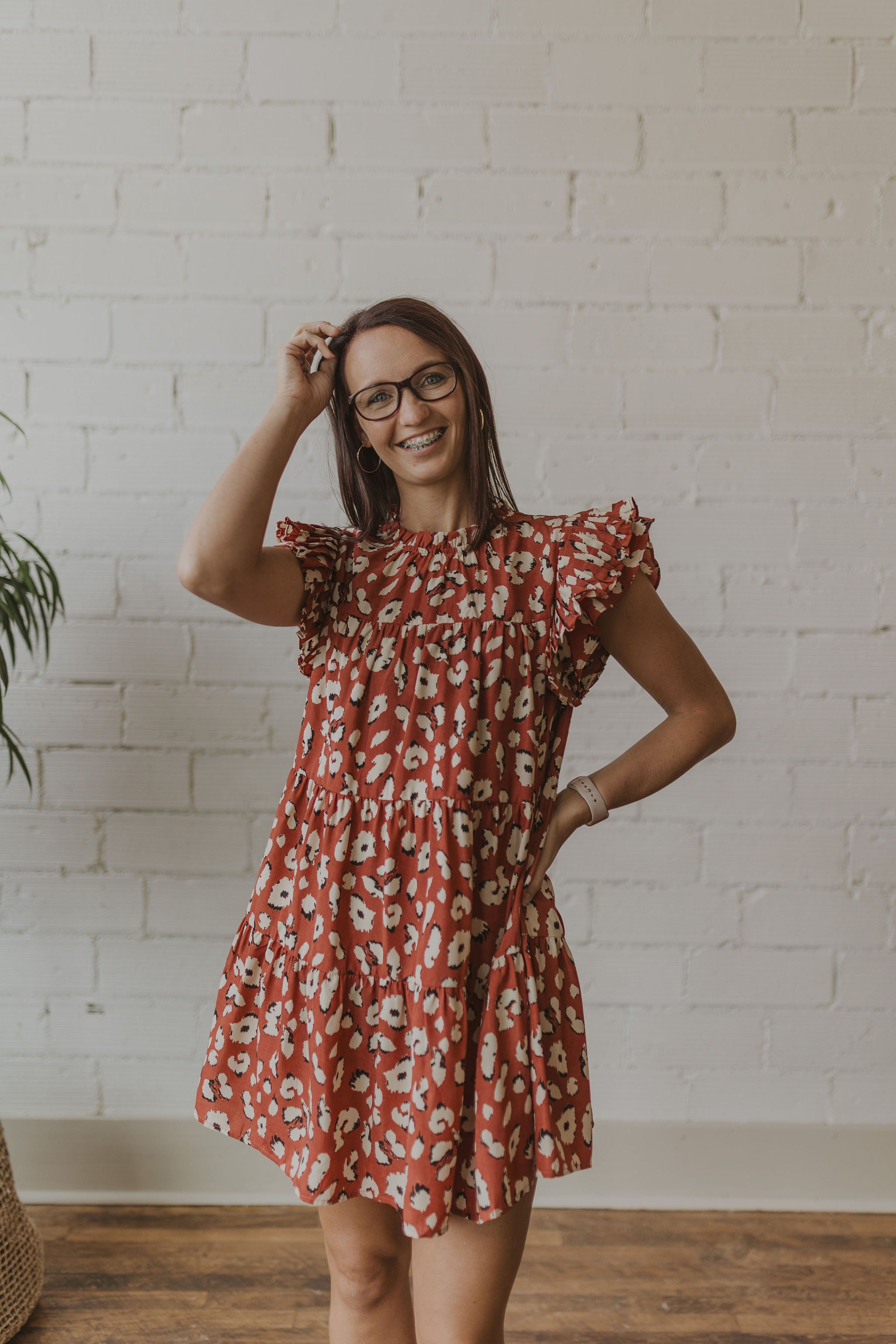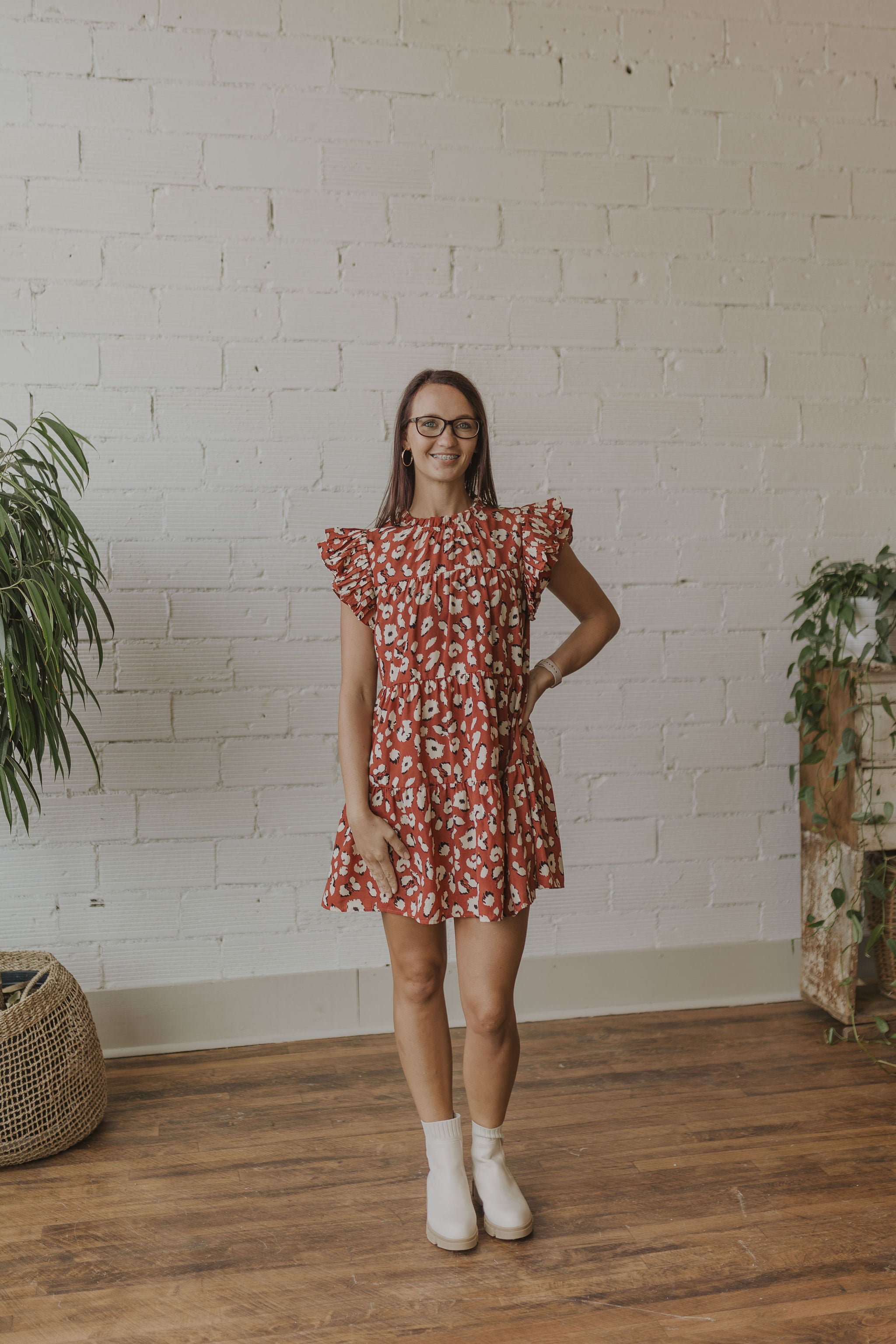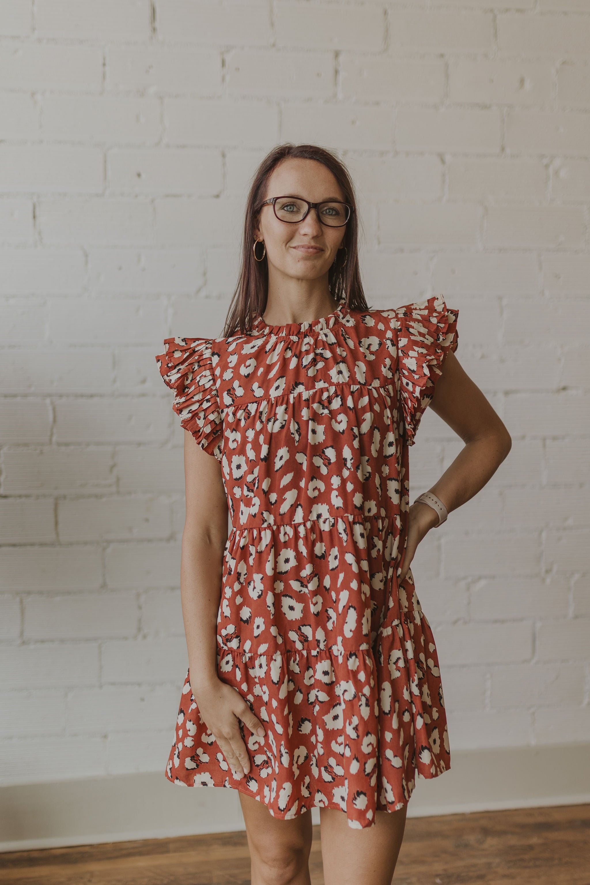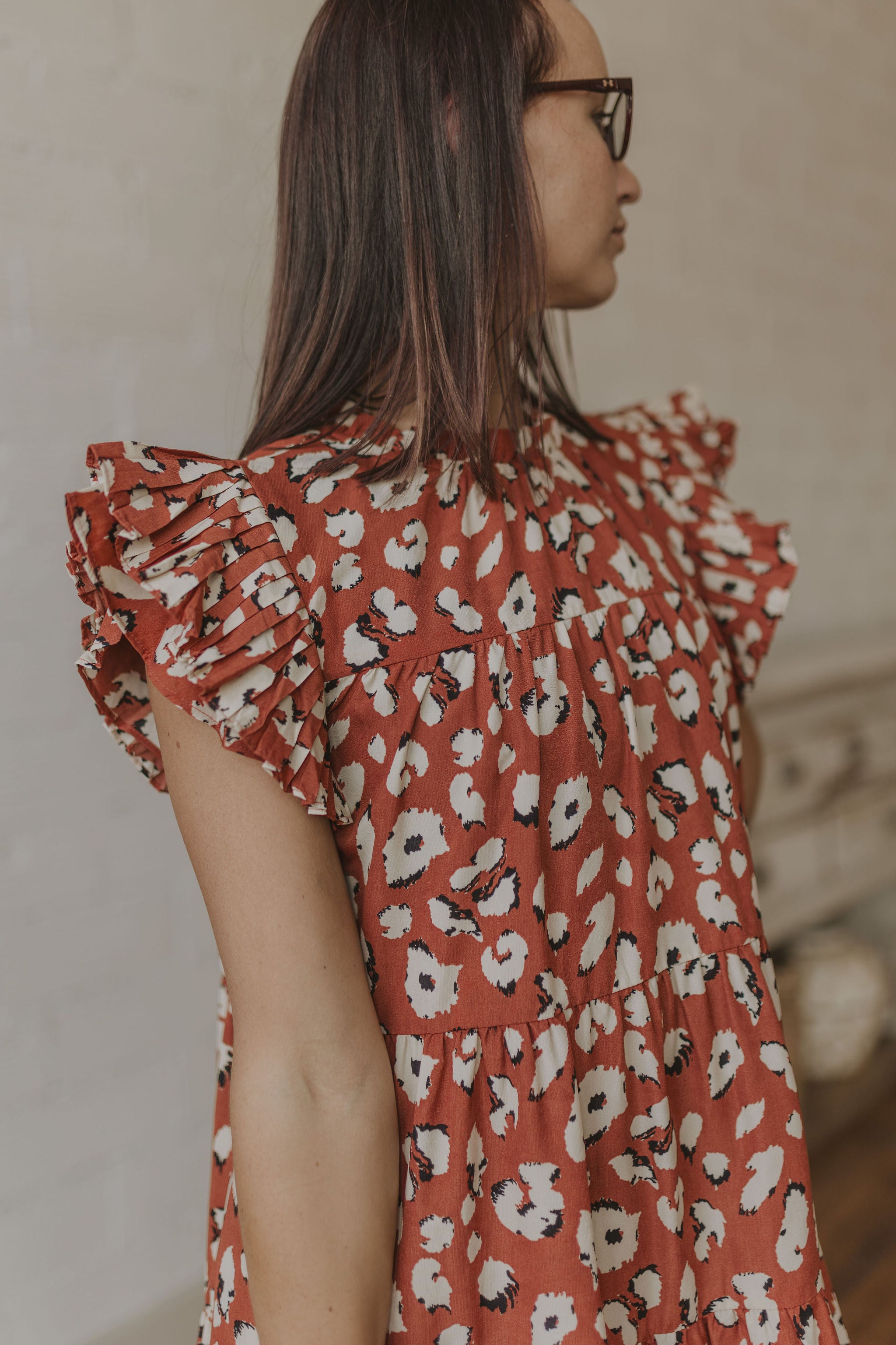 NATOSHA LEOPARD PRINT RUFFLE SLEEVE TANK DRESS