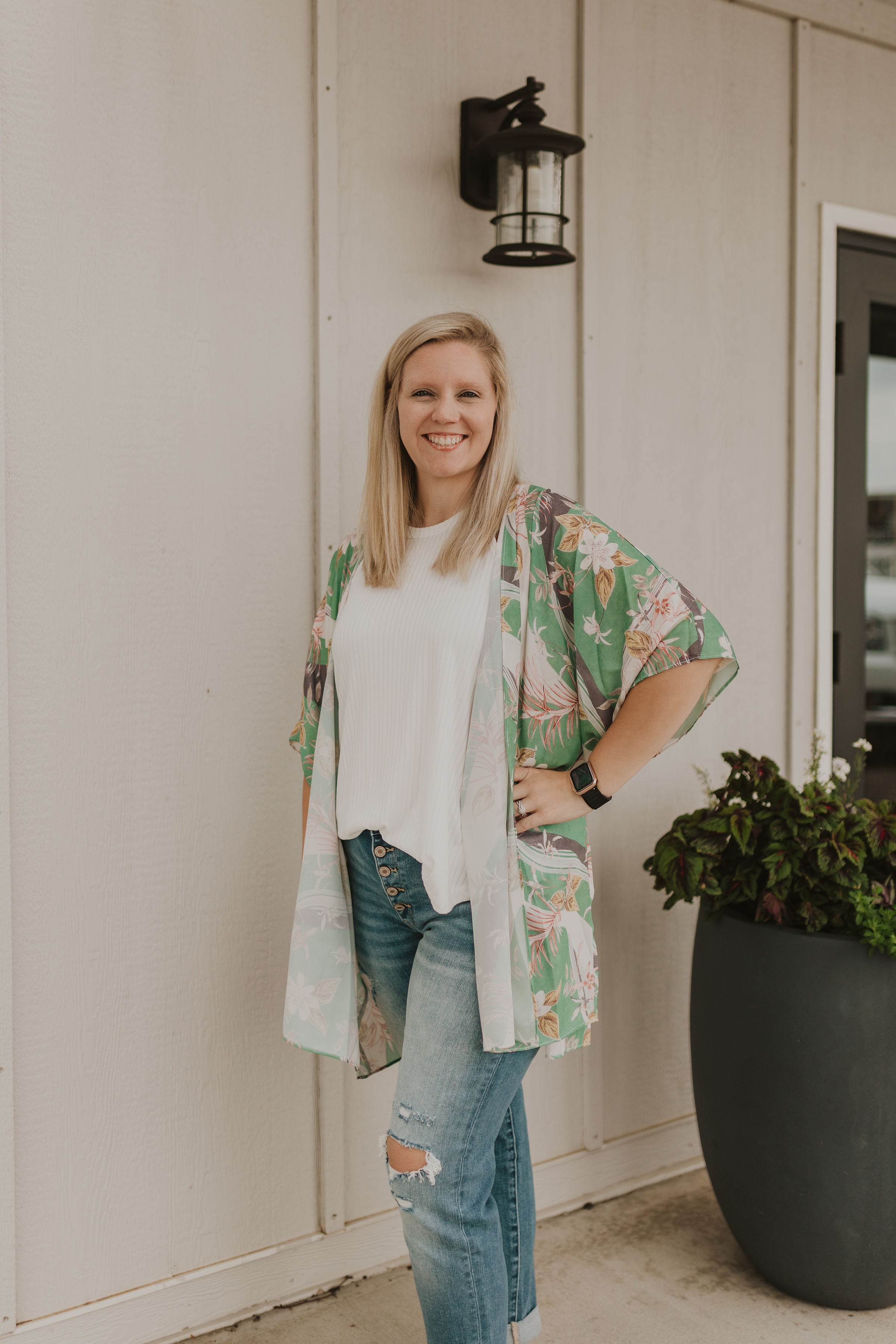 CHRISTI GREEN FLORAL KIMONO