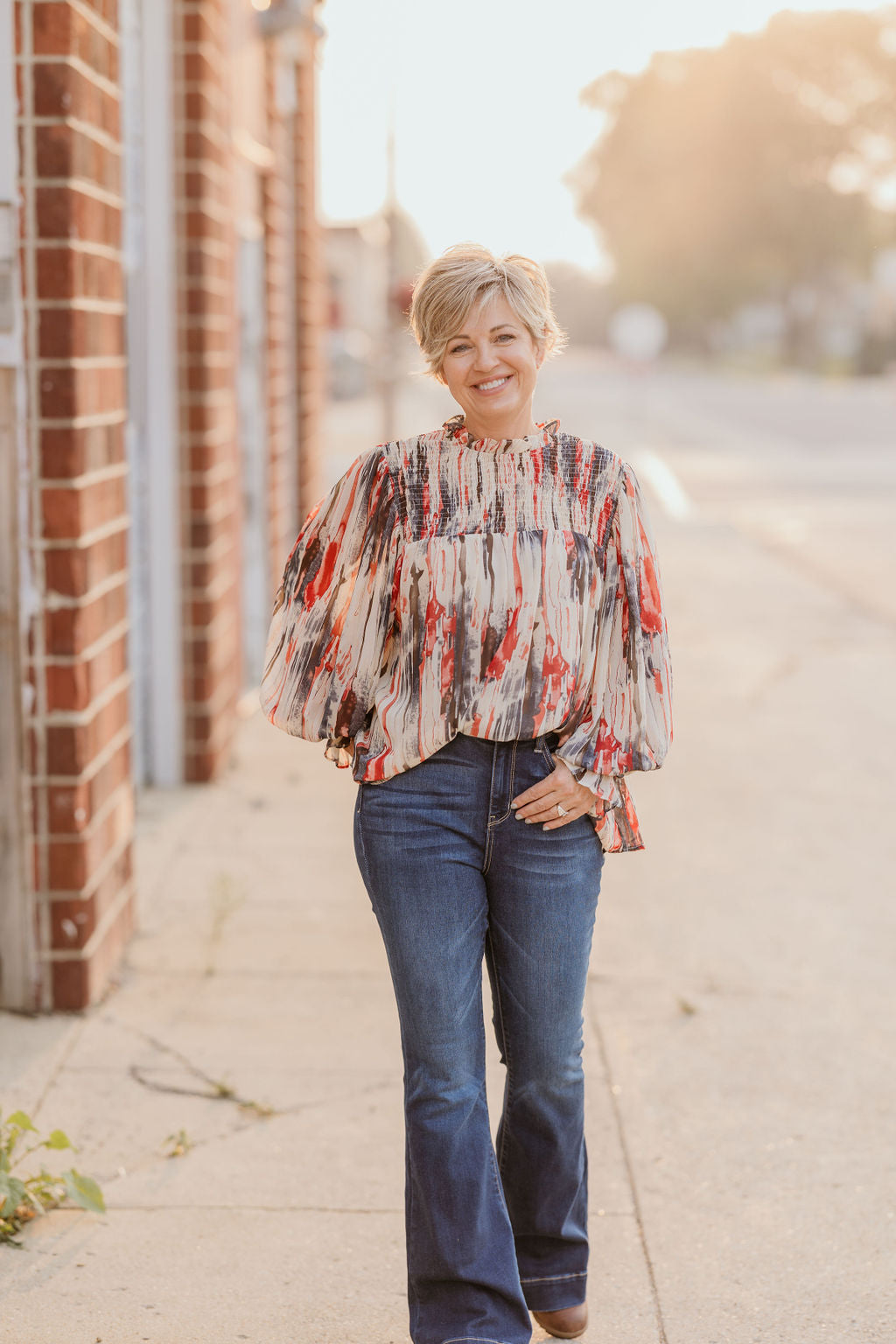 SMOCKED WAIST SOLID TOP BY IVY & CO