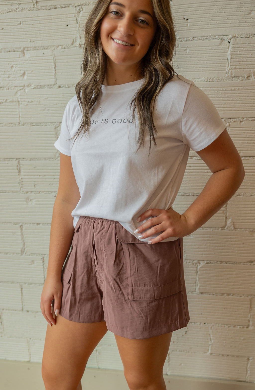CHARLOTTE DRAWCORD WAIST MINI SHORTS