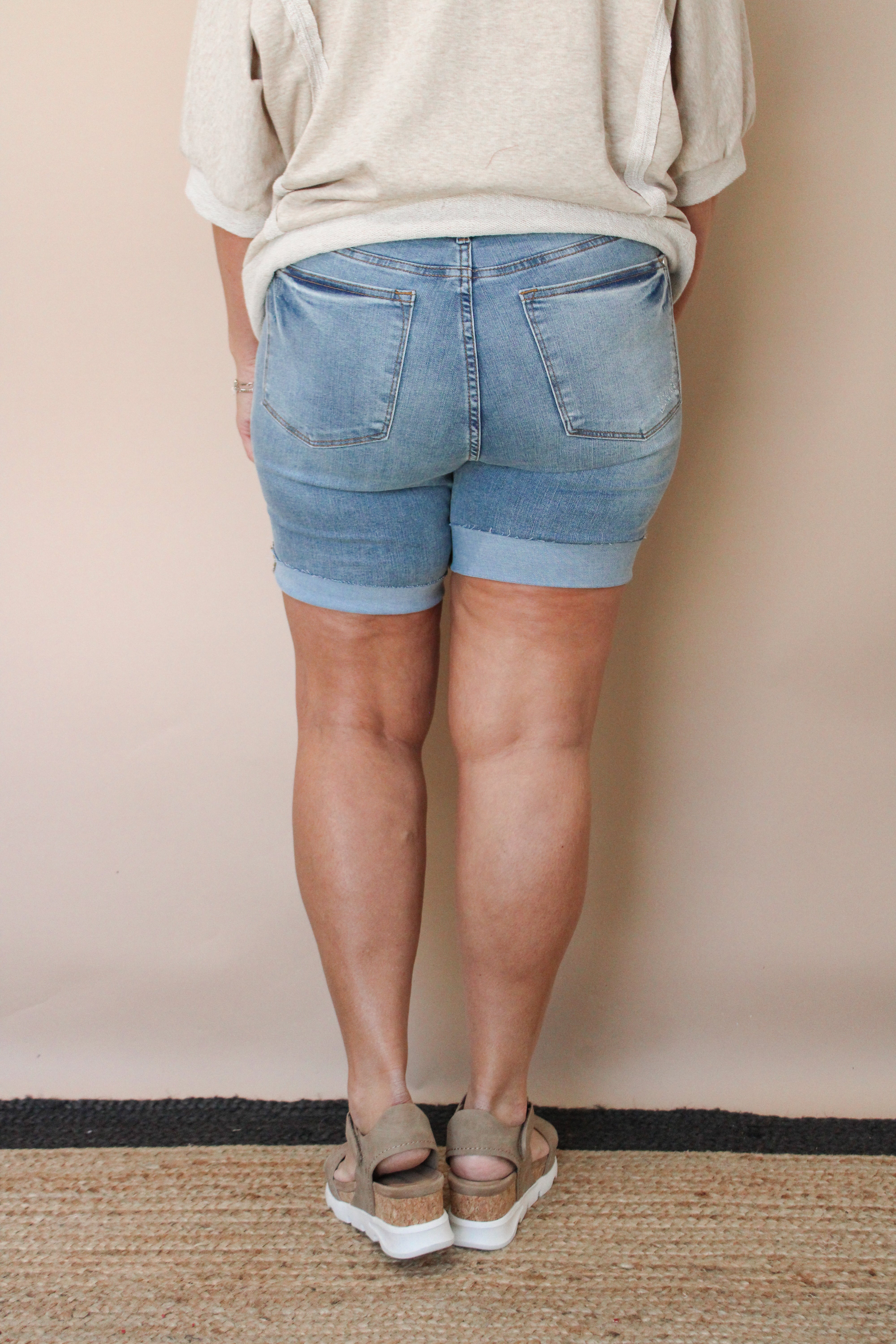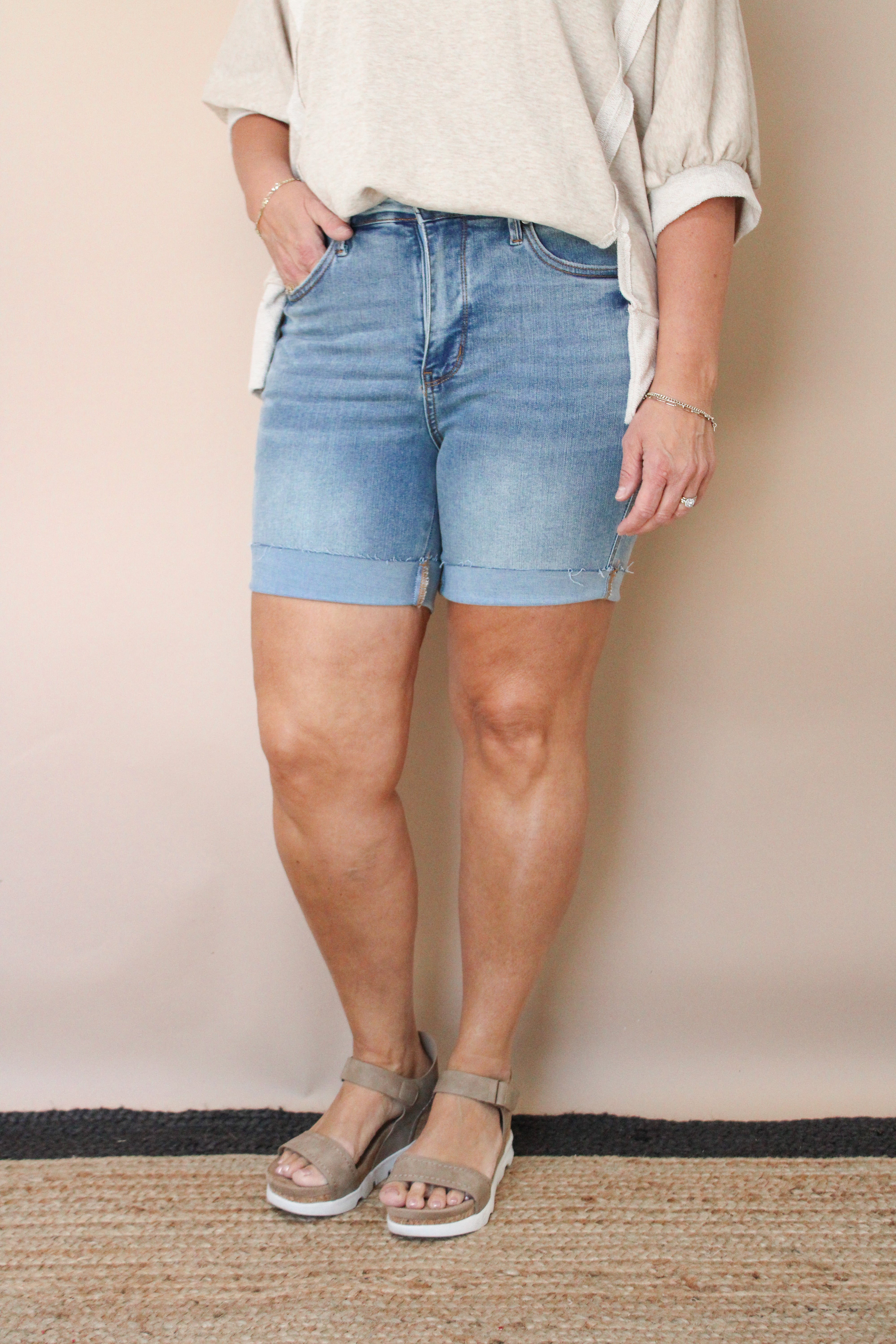 FYNN LIGHT WASH DENIM BERMUDA JEAN SHORTS