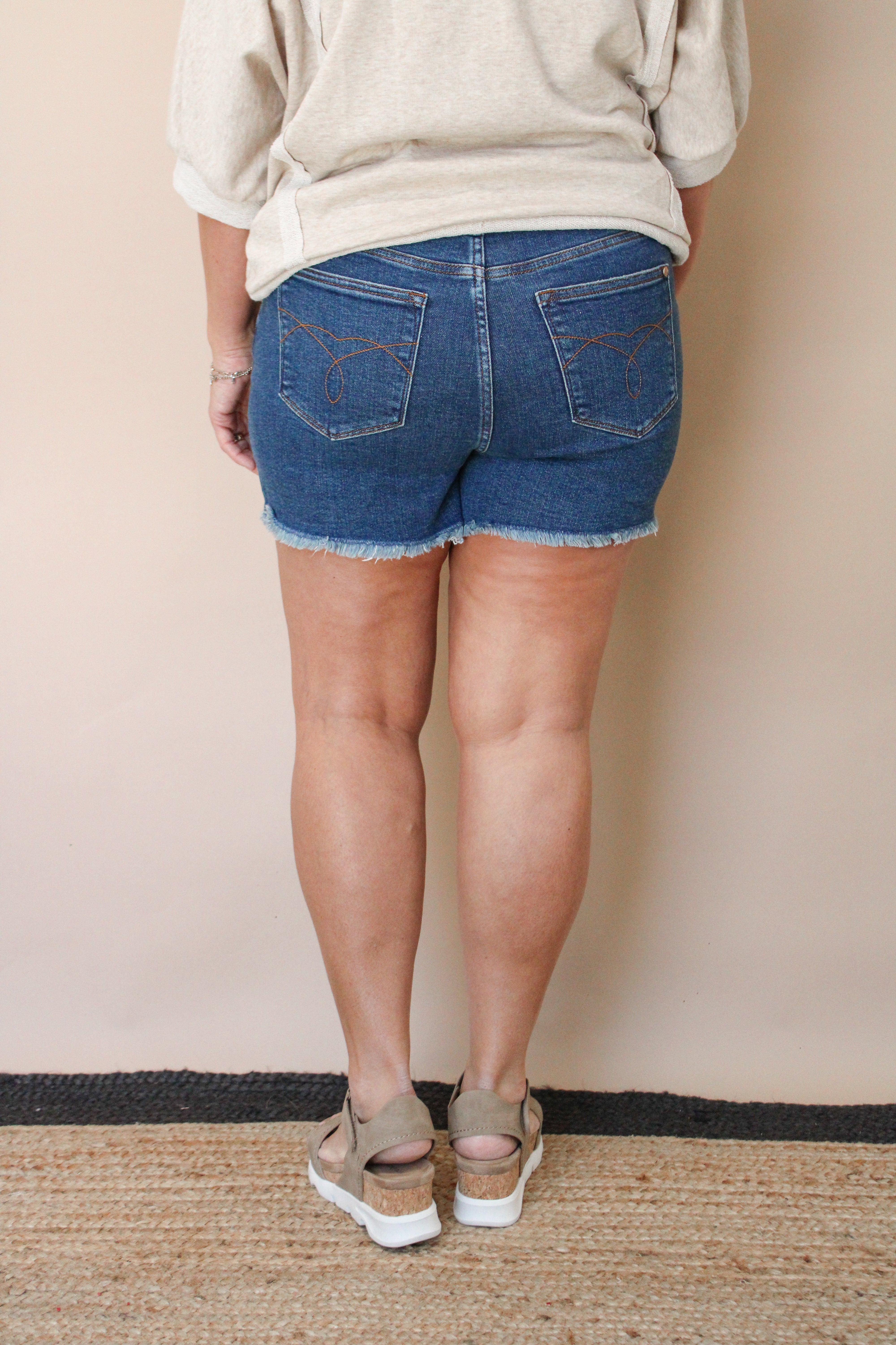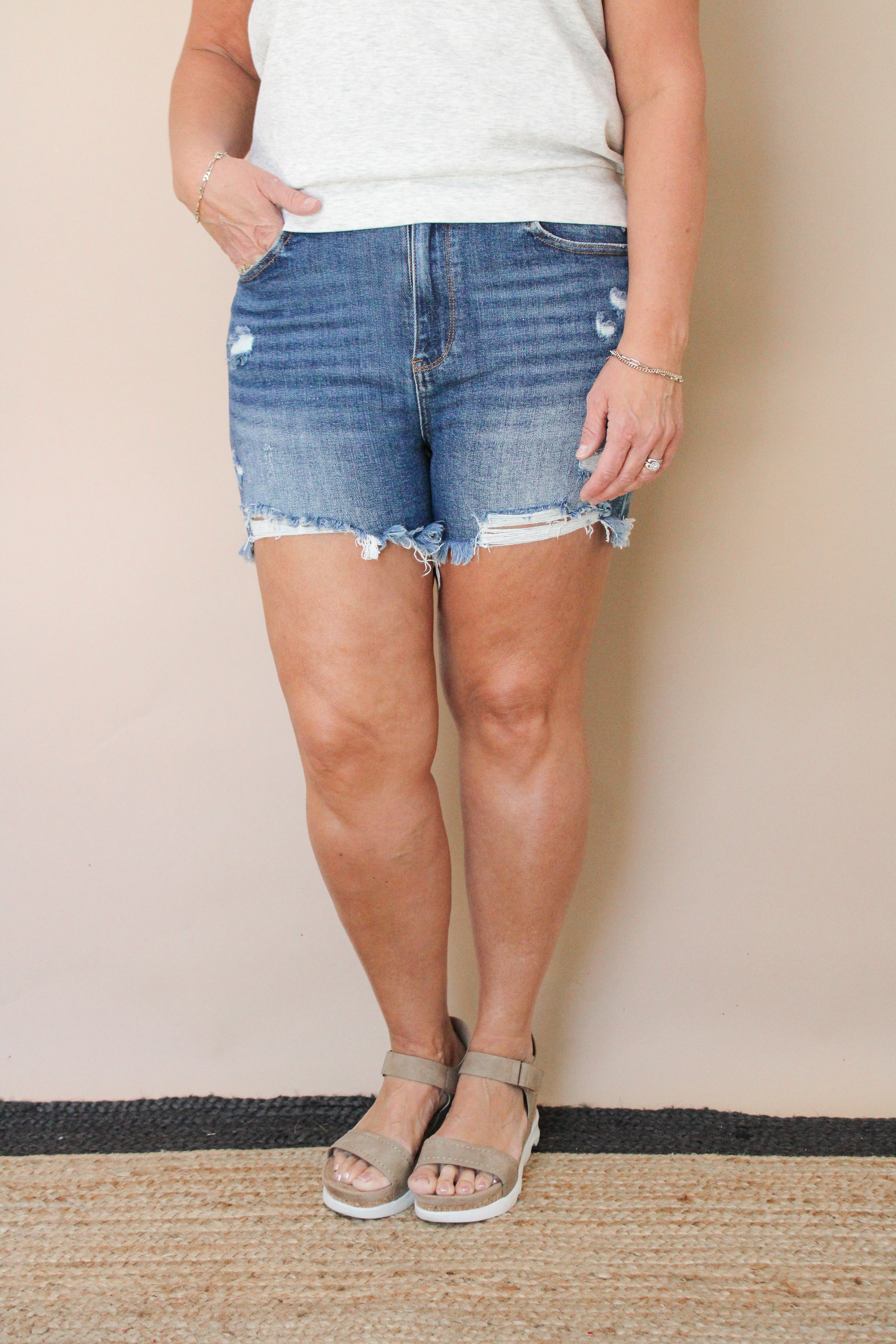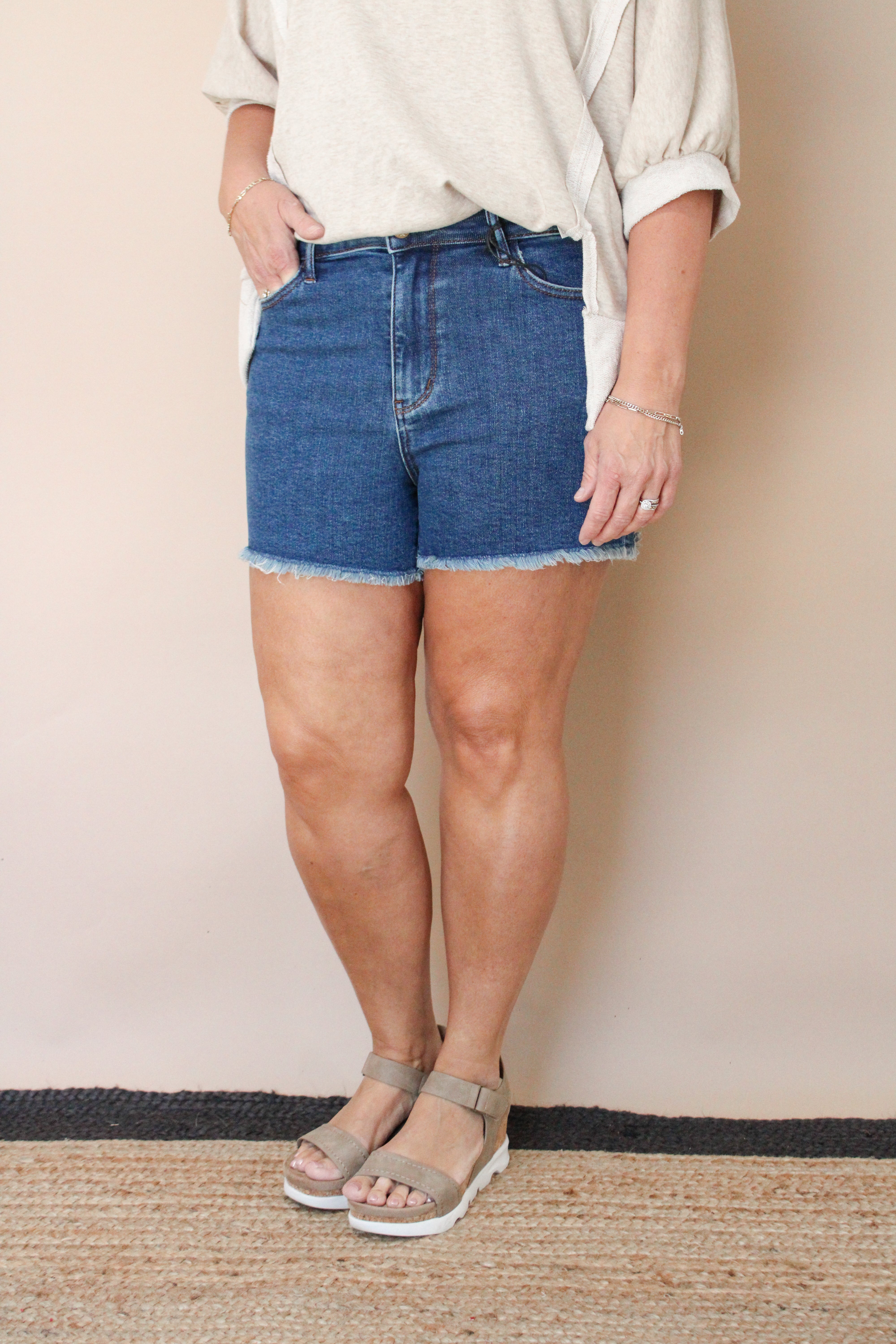 CASSIE REG/CURVY MEDIUM WASHED DENIM SHORTS