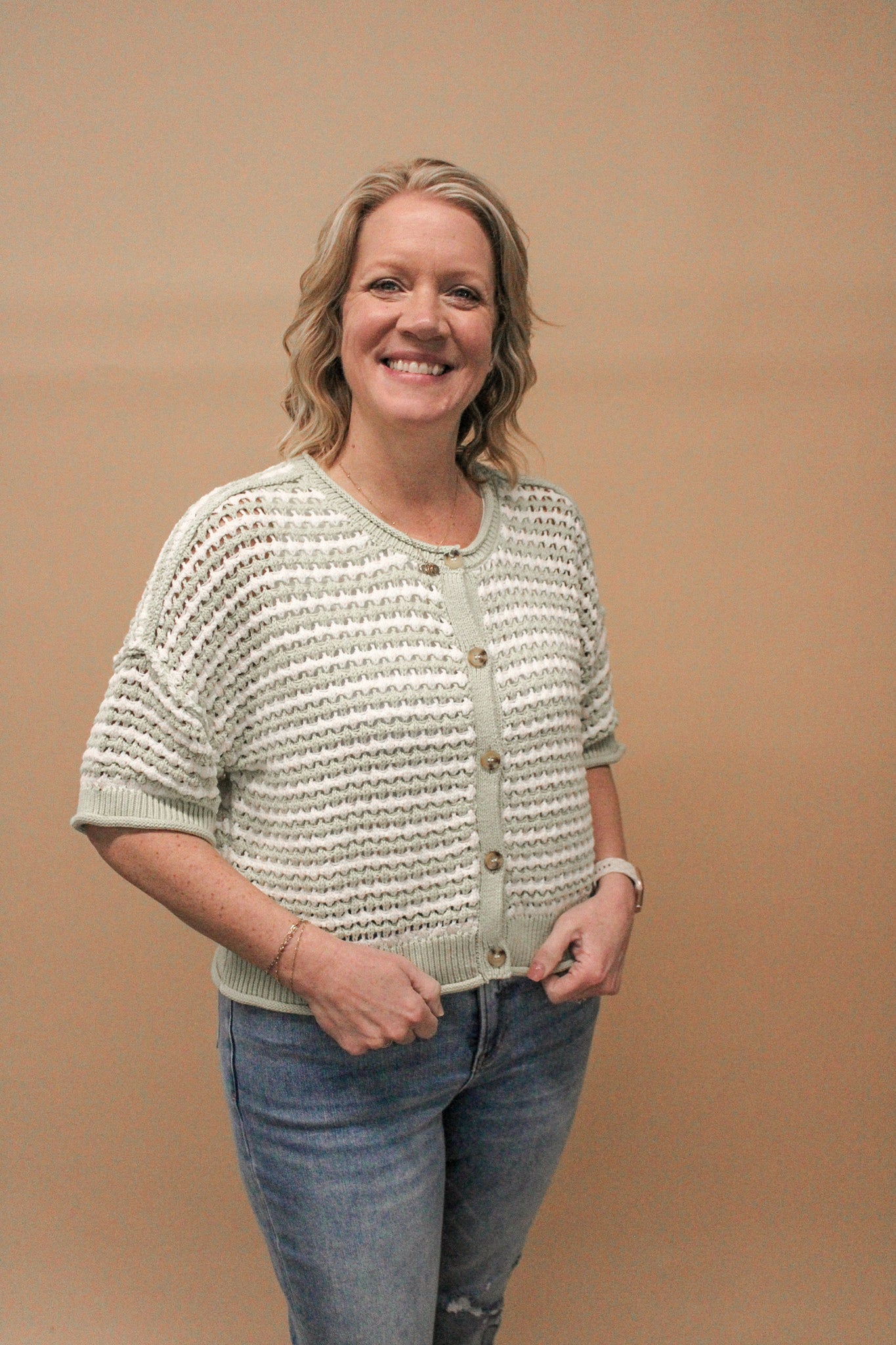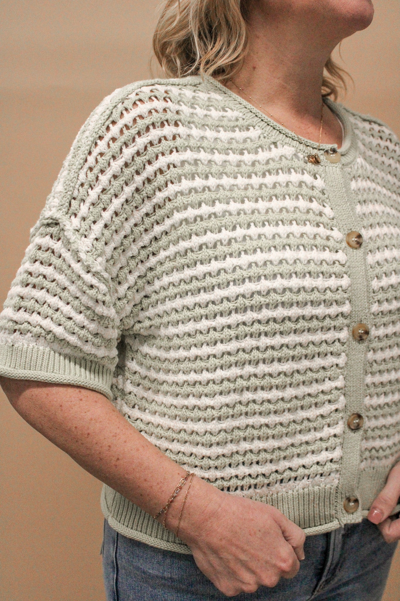 REAGAN BUTTON UP SHORT SLEEVE SWEATER