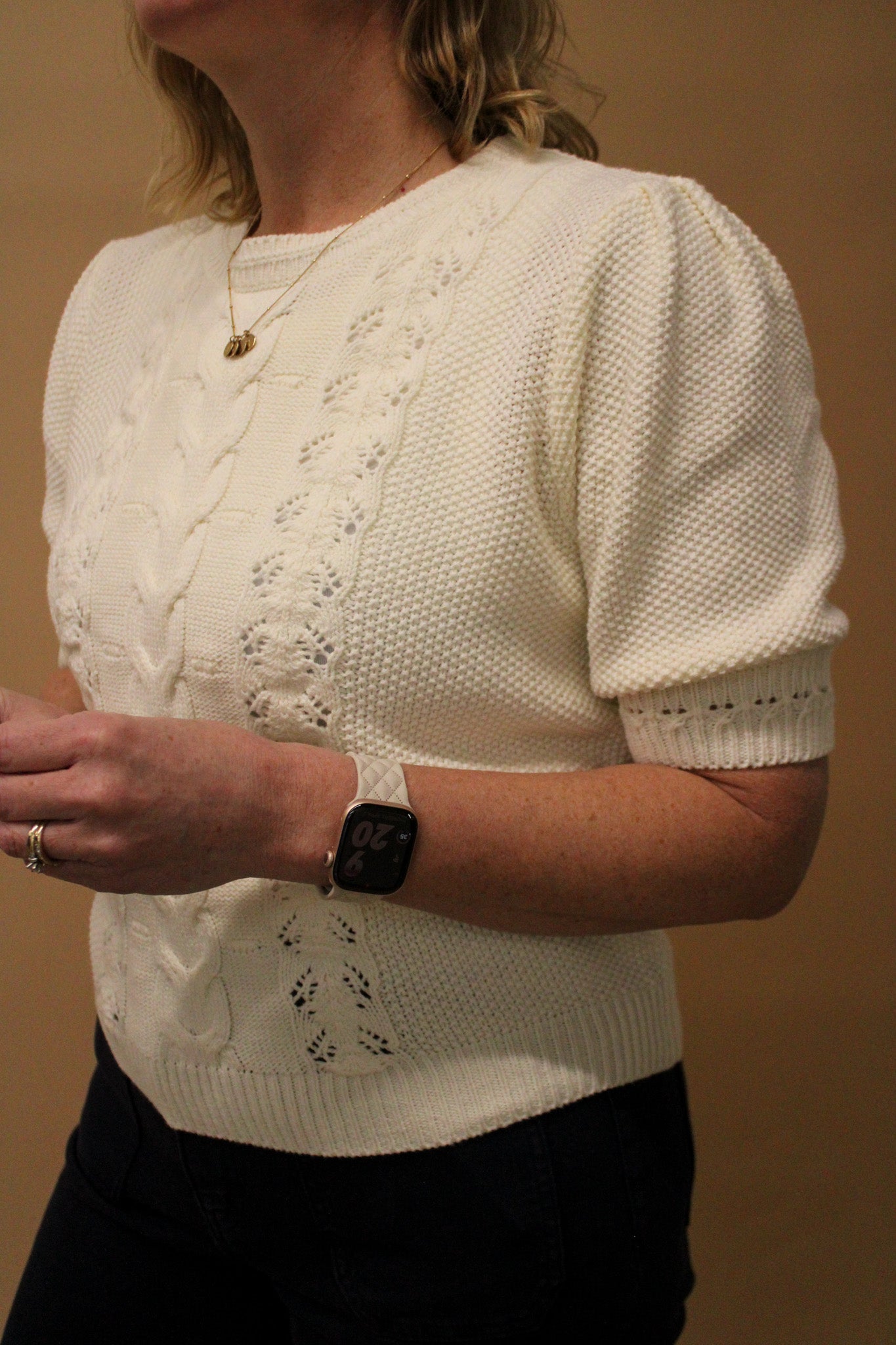 TRIXIE CHUNKY CABLE KNIT SHORT SLEEVE