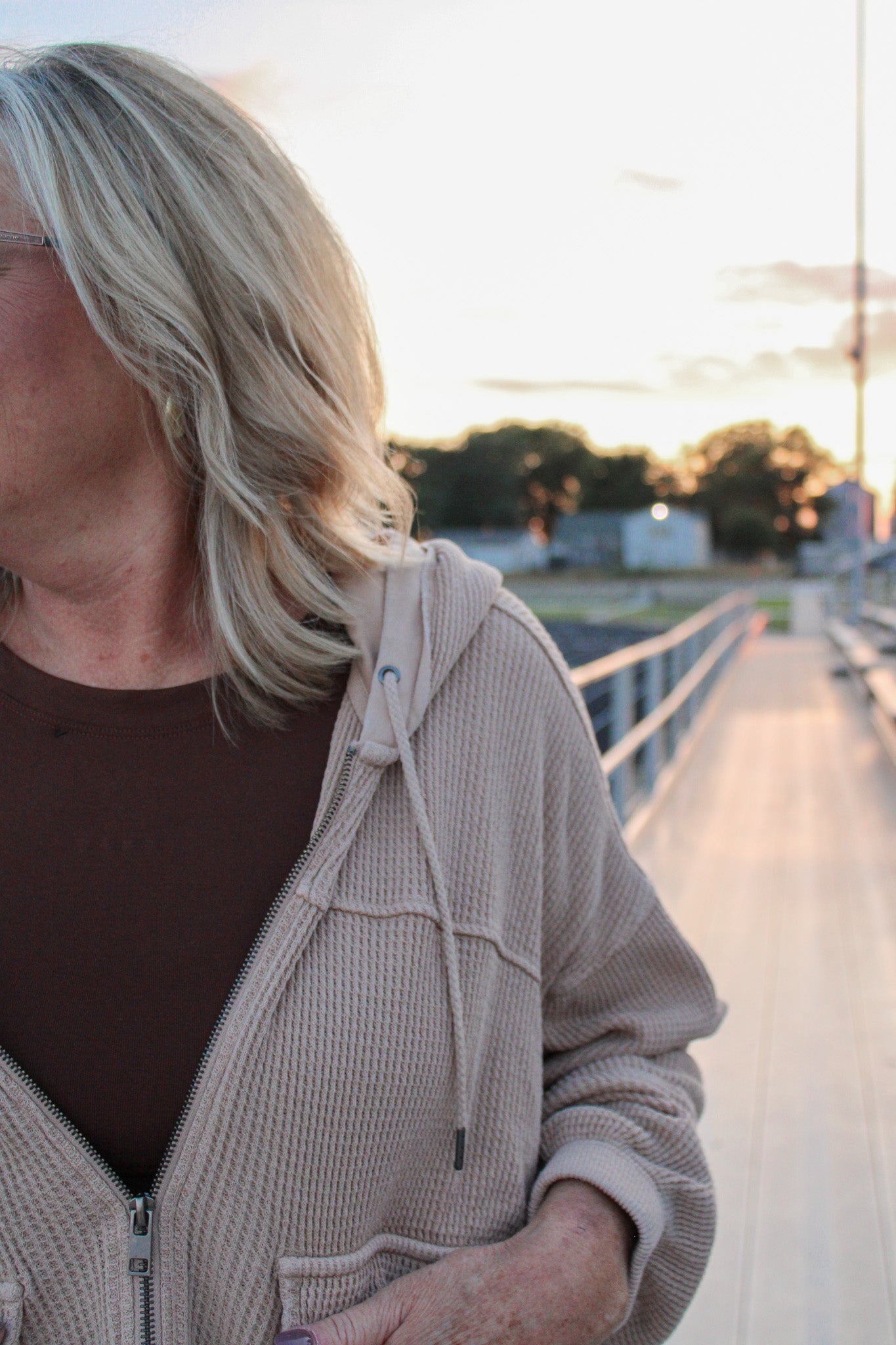 VENUS WAFFLE KNIT CONTRAST HOODIE