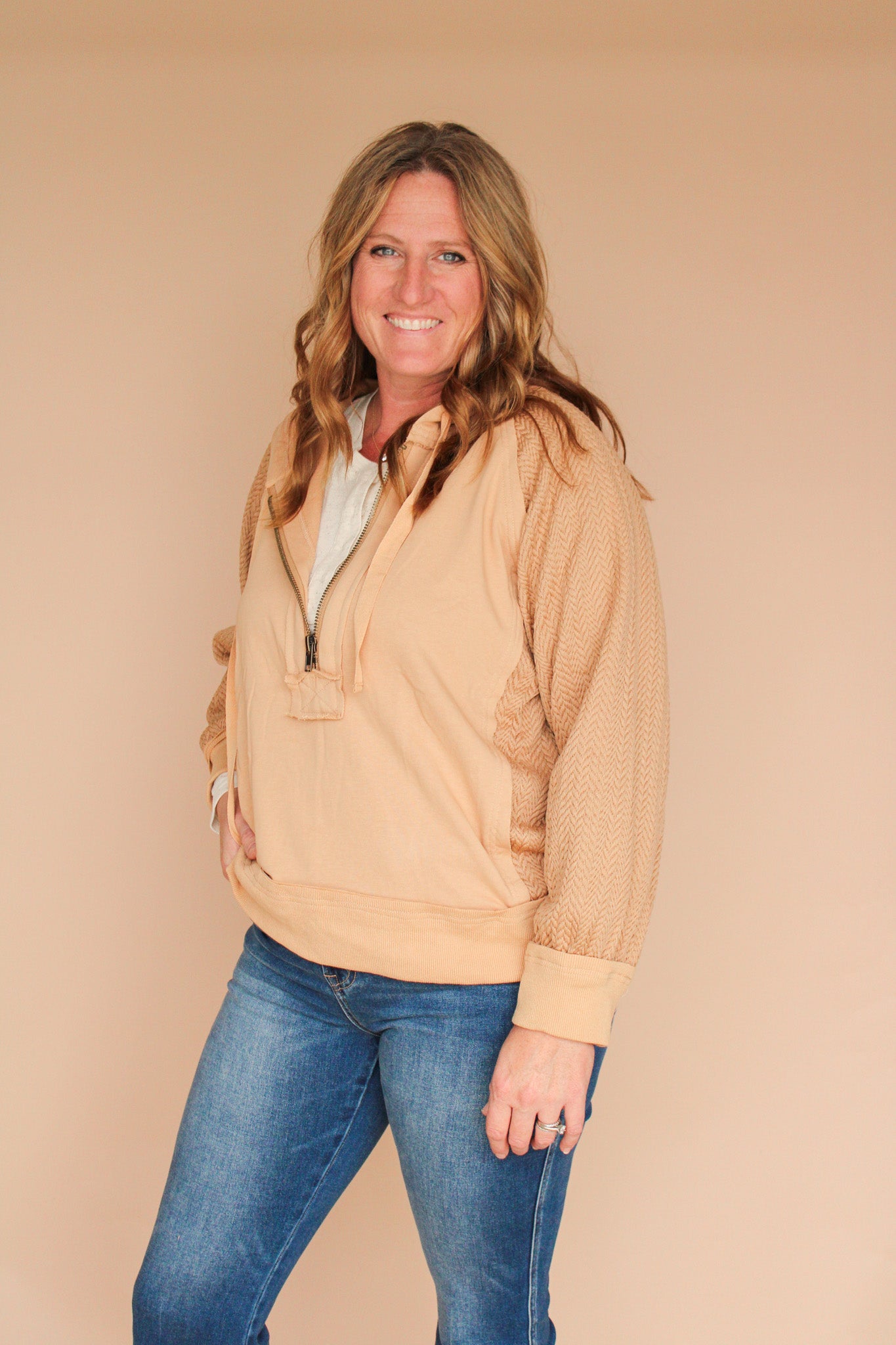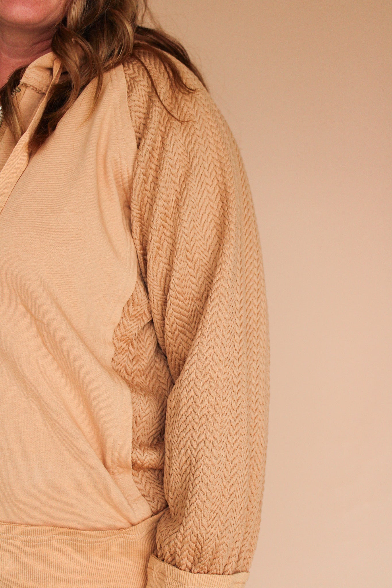 GAGE TEXTURED SLEEVE HALF ZIP HOODIE