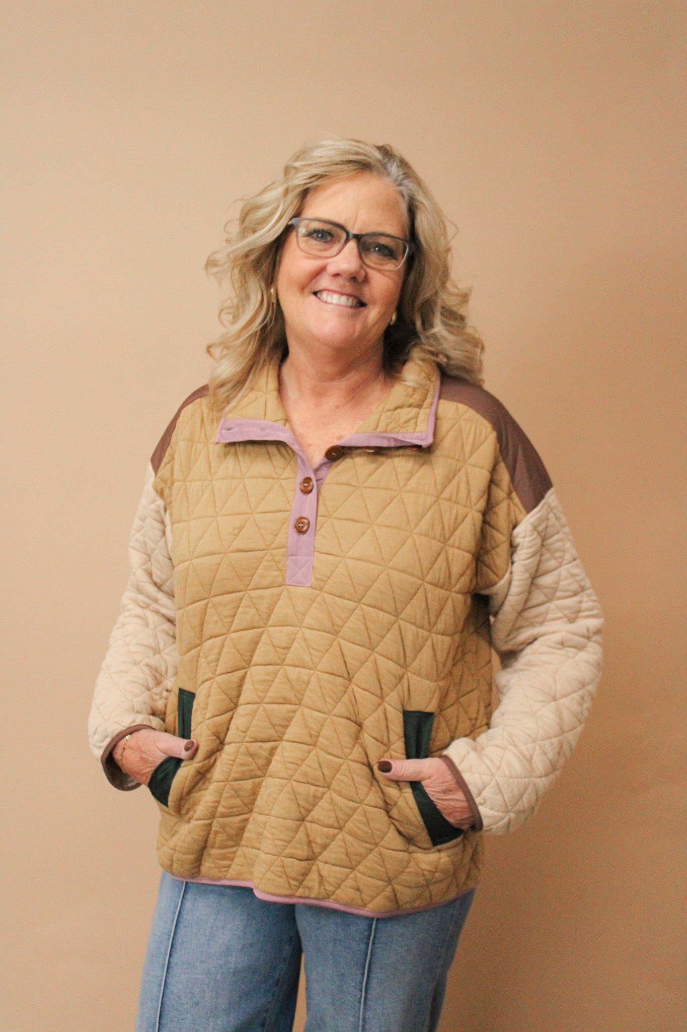 JAYCI QUILTED HALF BUTTON PULLOVER