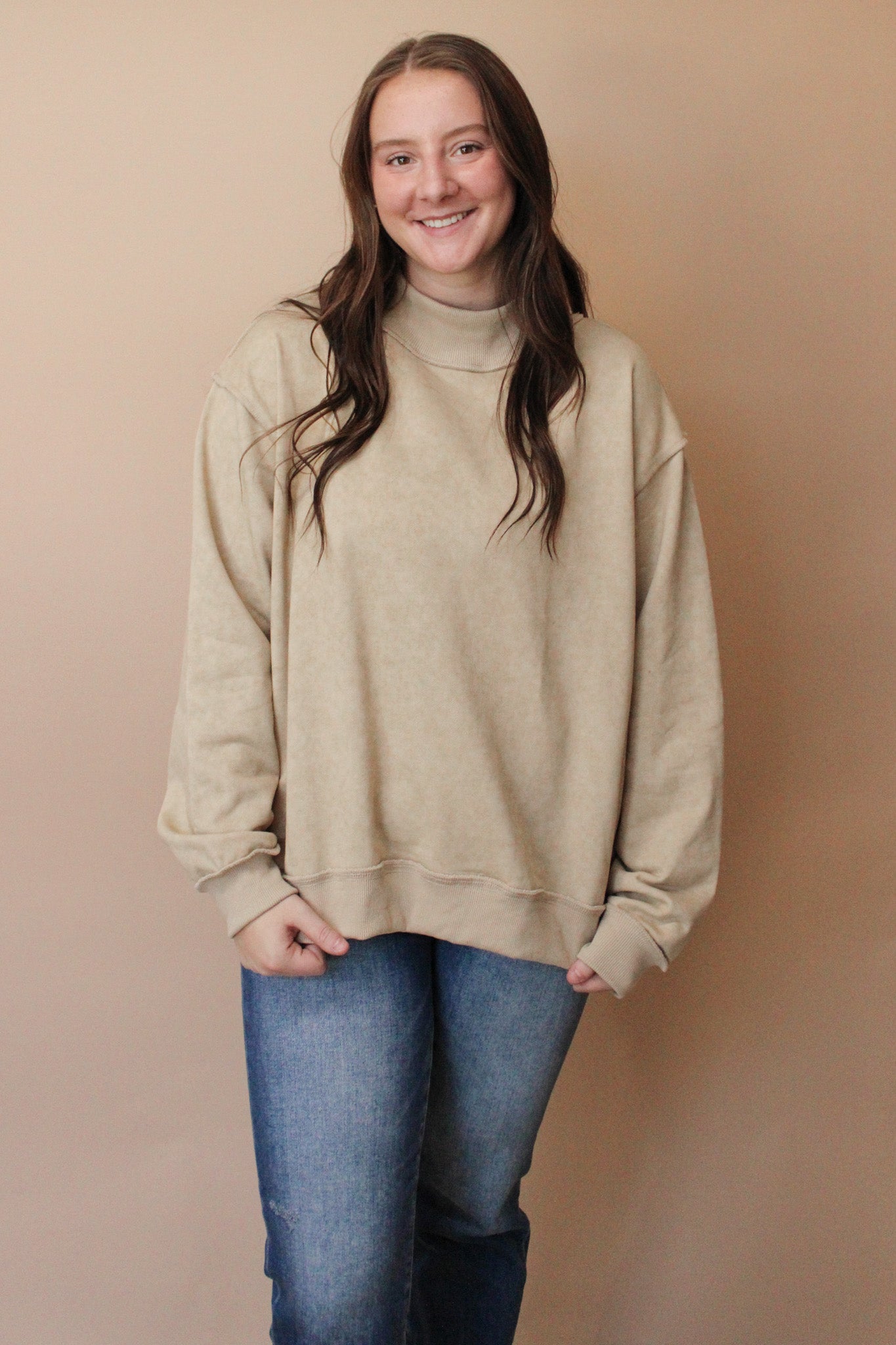KAYLA MOCK NECK VINTAGE WASH OVERSIZED SWEATSHIRT