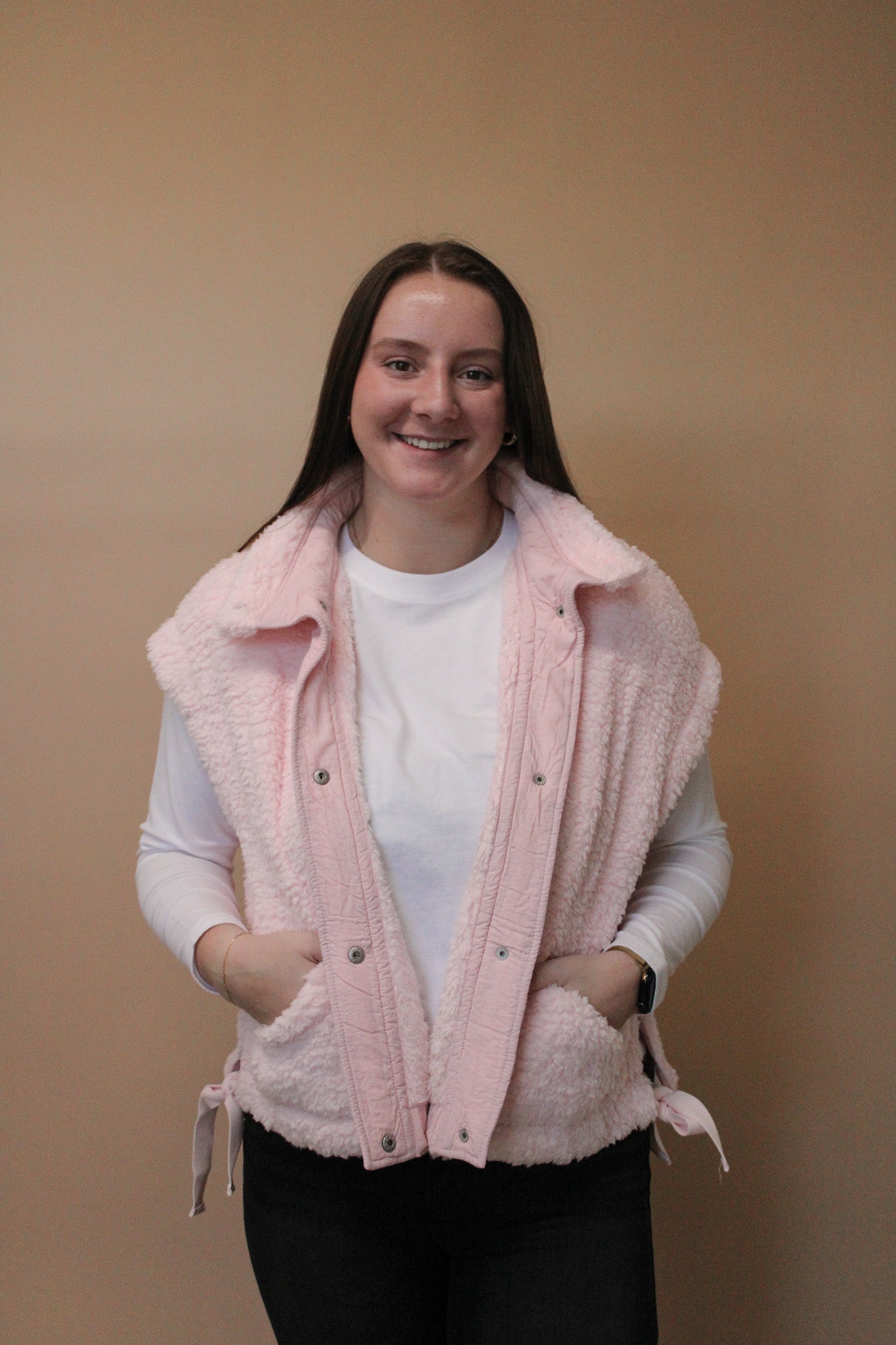 Stay cozy in style with this Oversized Faux Fur Vest—the ultimate layering piece for chilly days. This fluffy 100% polyester button-up features an oversized silhouette with generous armholes, perfect for throwing over your favorite long sleeves. The stand-up collar adds edge, while front pockets keep your essentials close. Love the fit one day and want it snugger the next? Tie the elastic straps at the side slits to cinch the hem and lock in warmth. Soft, durable, and endlessly versatile—this vest is your new go-to for effortless autumn vibes.