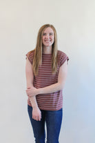 Unleash your playful side in the ALLORE STRIPED TERRY TOP. This crewneck short sleeve top features a striped design and cozy French terry material. Perfect for adding a touch of fun to any outfit. (Stripes never go out of style!)