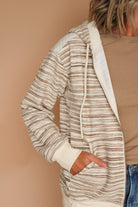 Cozy meets cool in the ALVAR Quilted Hoodie Zip-Up! This playful jacket blends soft taupe and warm brown stripes with a quilted texture, making it the perfect statement piece. Featuring a drawstring hood and handy side pockets, it’s designed for both comfort and convenience. Whether you’re lounging or out and about, this hoodie adds effortless style to your day.