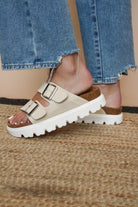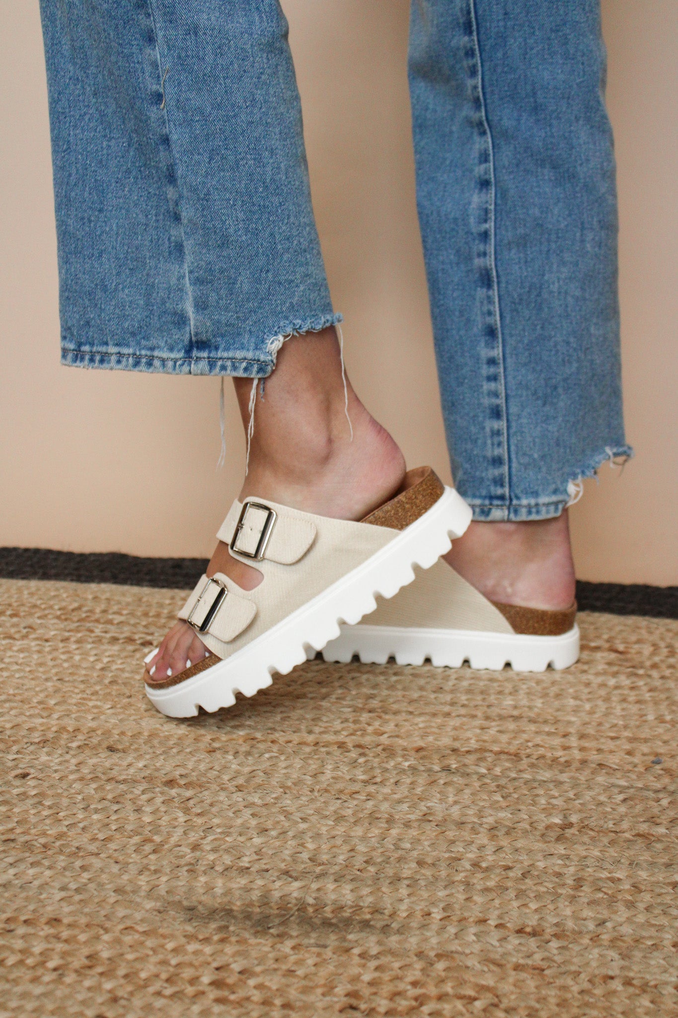 Step into fun with the Jazmin Platform Sandal! Featuring double straps and a secure buckle, these cream-colored platforms add a playful lift to any outfit. Perfect for those who love a little height and a lot of style.