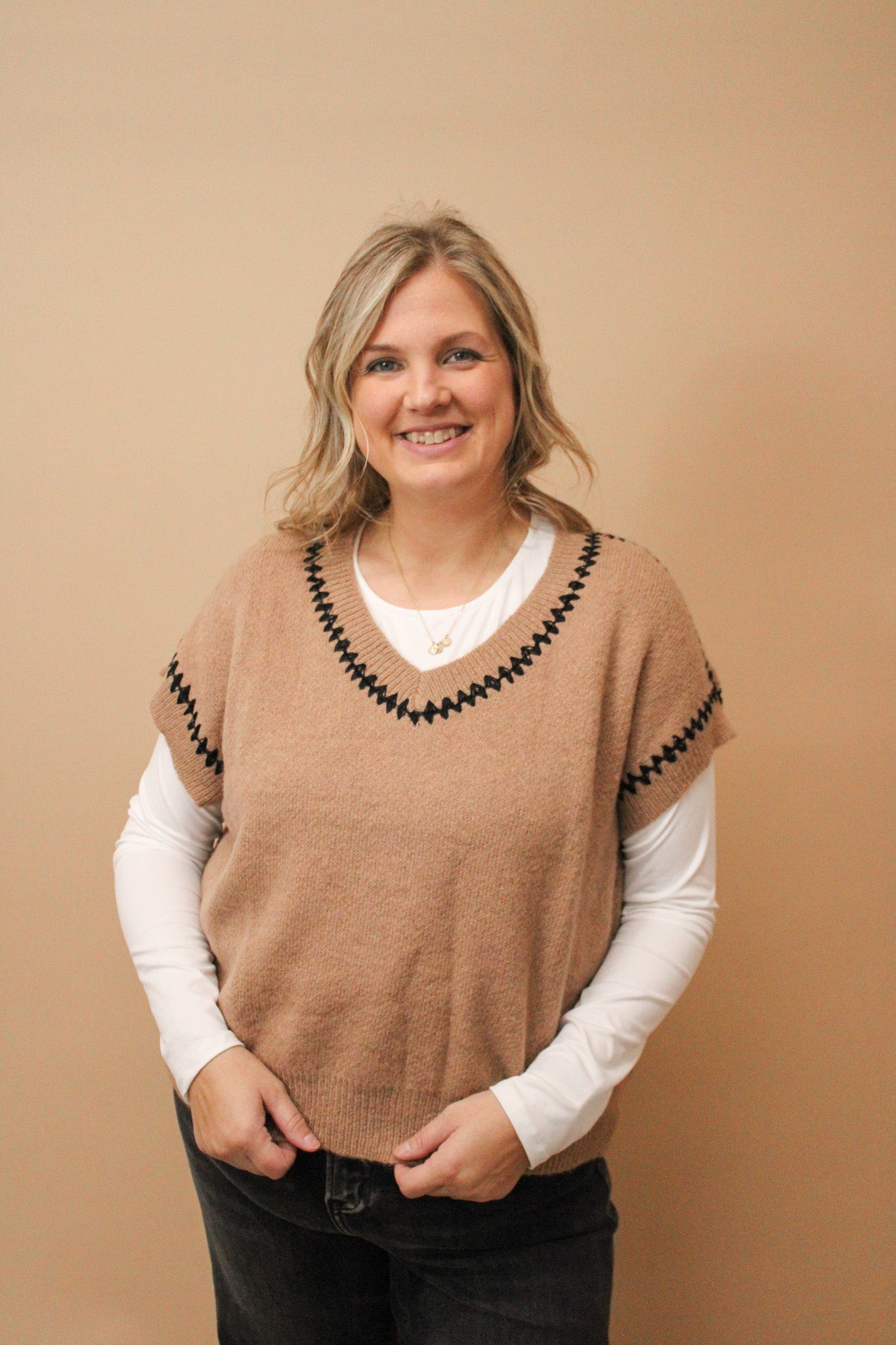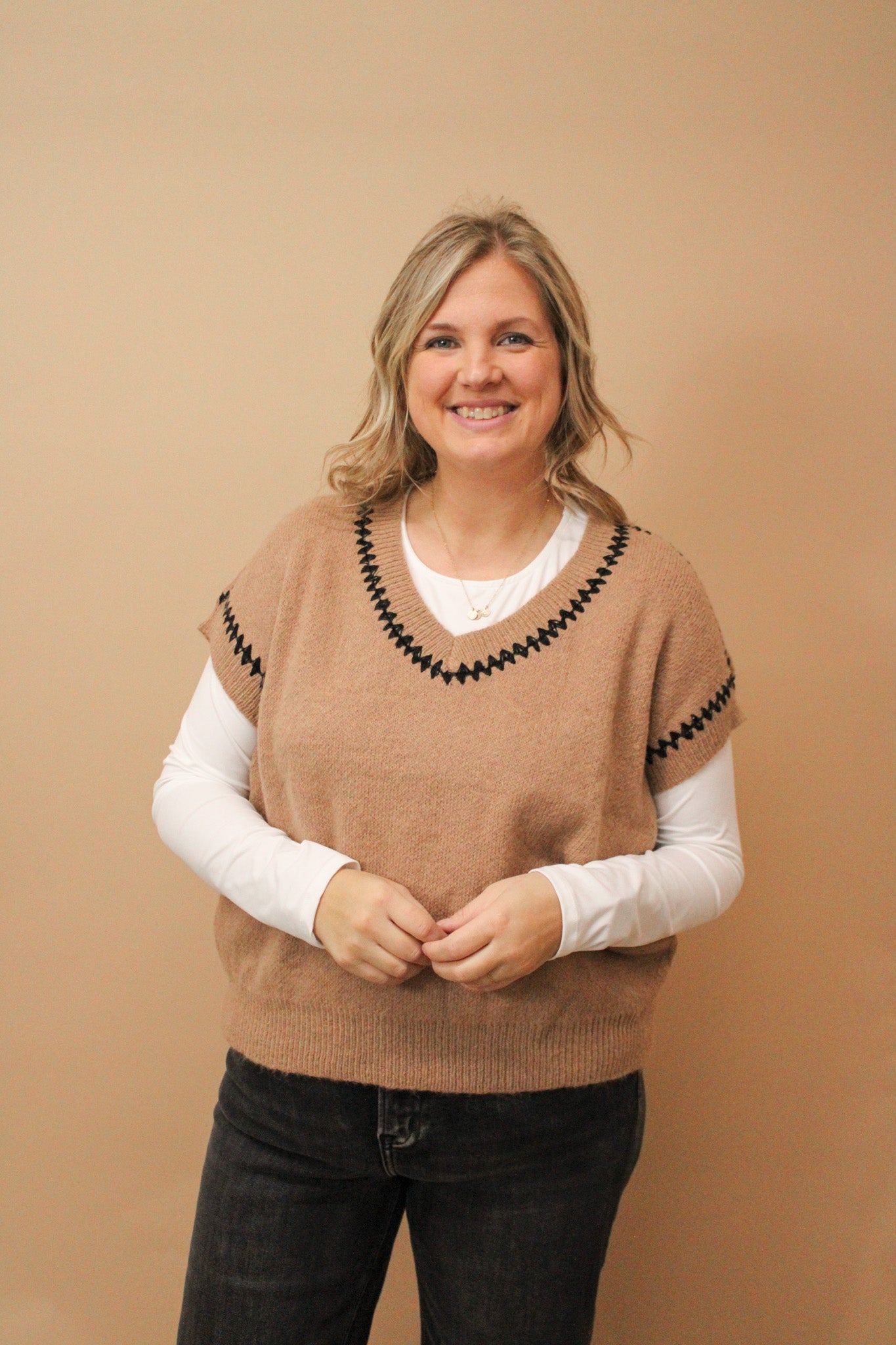 JOY STITCHED DETAIL VNECK SWEATER VEST