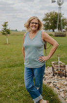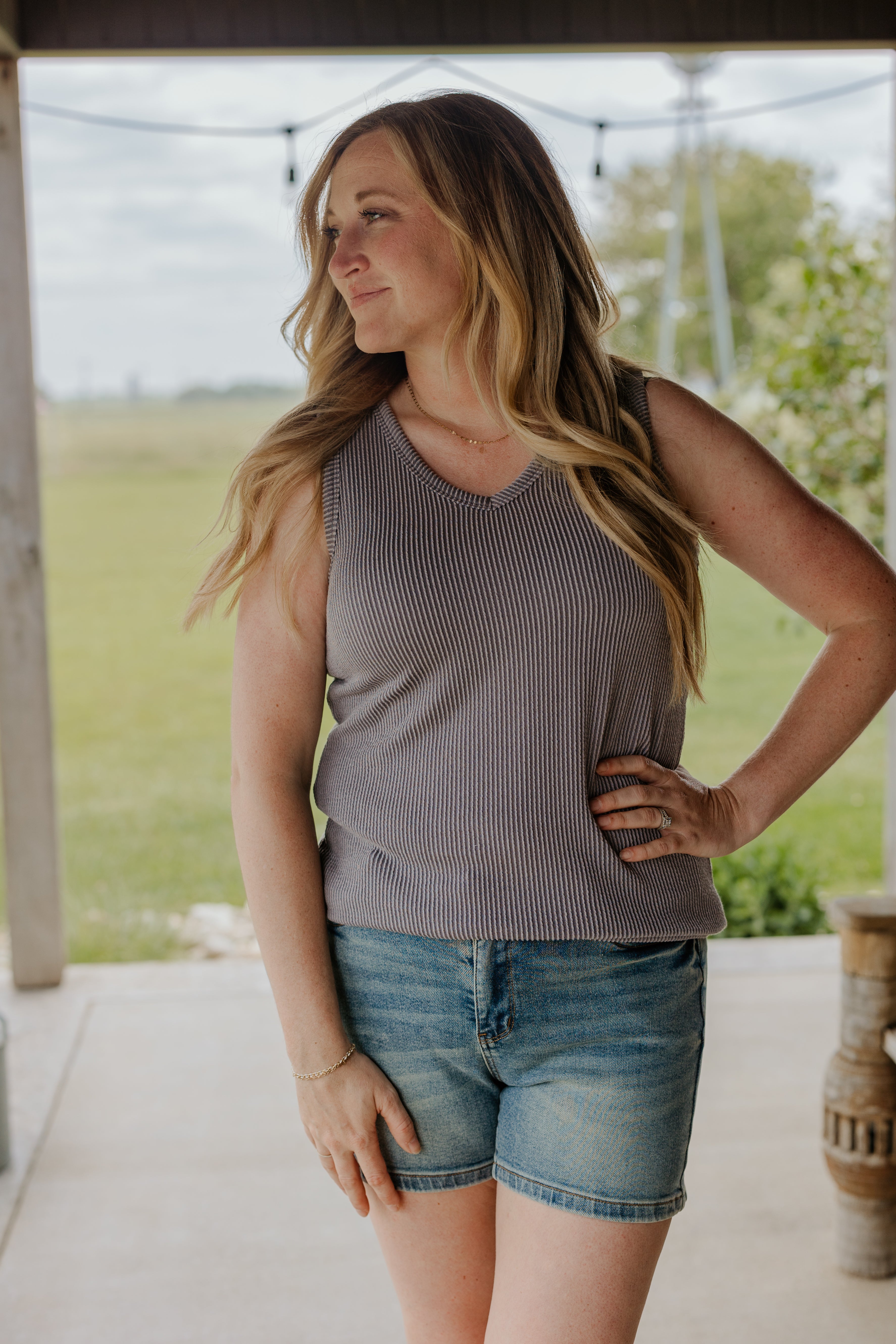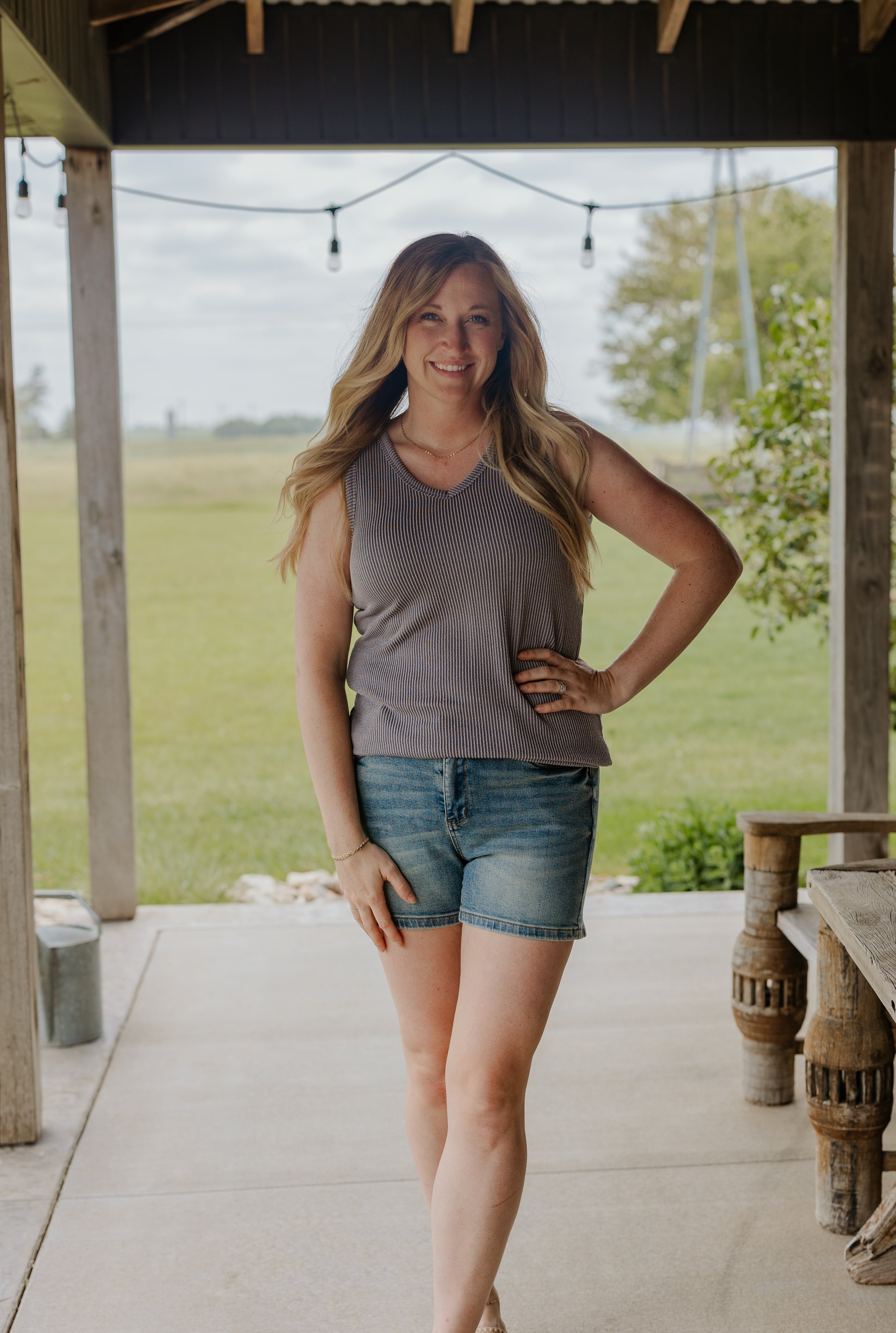 Dive into summer with our KATHIE RIBBED VNECK TANK! This playful yet premium sleeveless top hugs in all the right places with stretchy ribbed fabric that breathes when temperatures rise. Soft, lightweight, and oh-so-comfortable, it's the versatile essential your wardrobe's been begging for. Dress it up or keep it casual – this fitted tank plays well with everything!