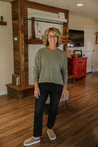 Stay cozy and chic in our LENNOX KNIT SWEATER! Made with soft, breathable fabric (55% viscose, 45% nylon) that keeps you warm without weighing you down. Long sleeves and a classic crewneck make this olive sweater a versatile addition to any wardrobe.