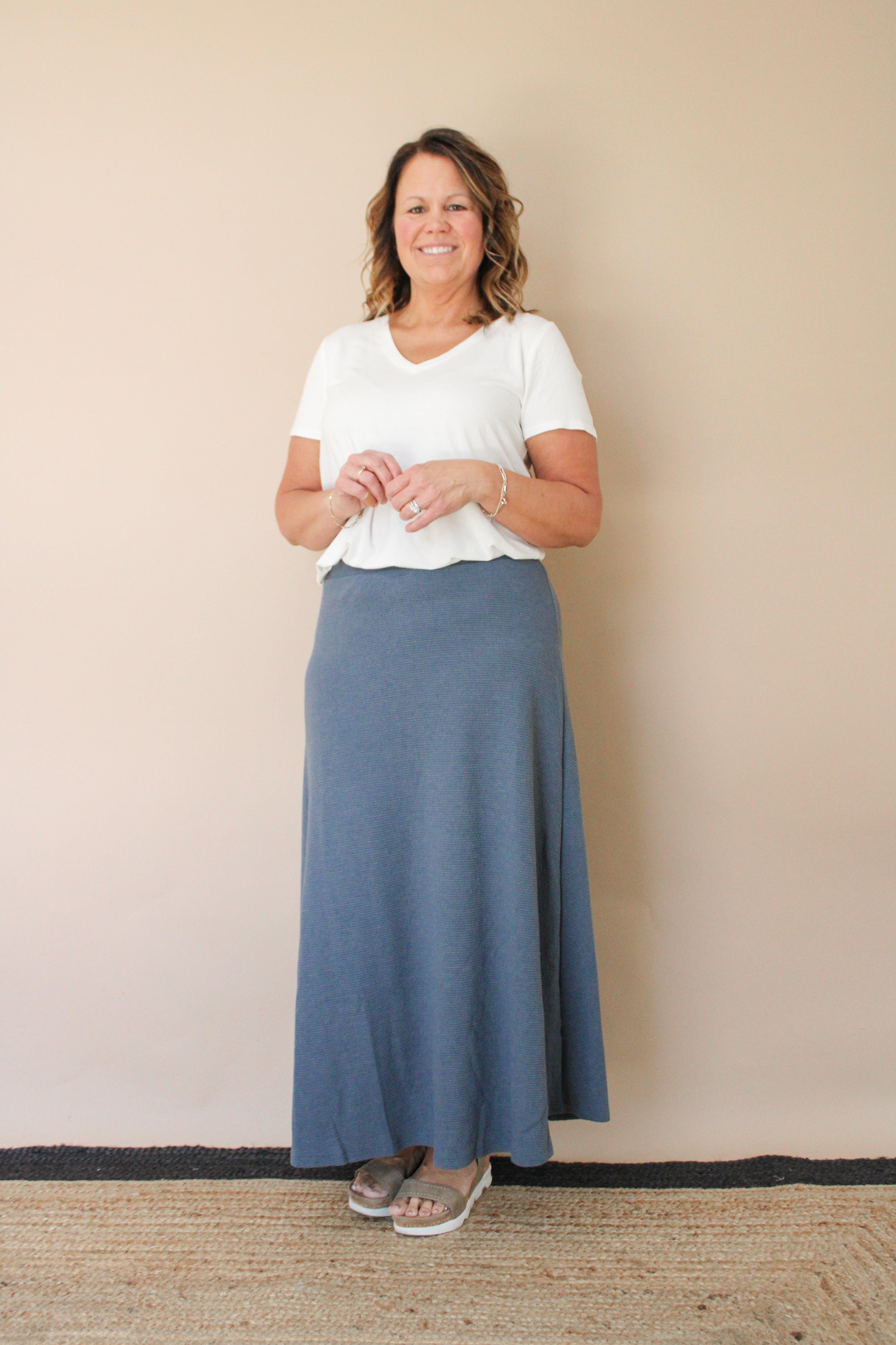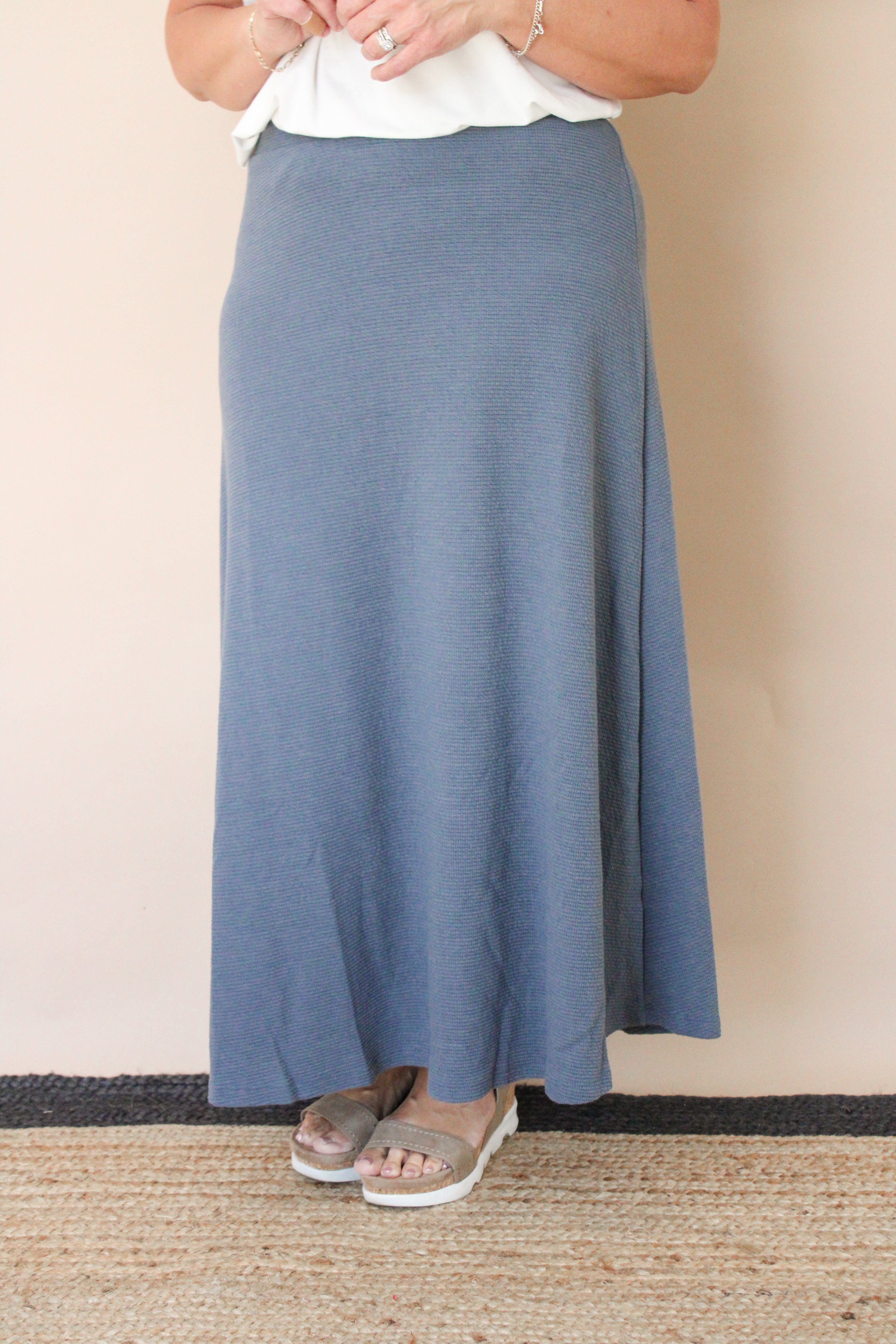 Introducing our A-Line Cloudy Knit Skirt: a versatile addition to your wardrobe. Crafted from our signature Cloudy Knit fabric, this skirt offers both comfort and style with its flattering A-line silhouette. Perfect for casual outings or dressing up for special occasions, it pairs effortlessly with your favorite tops and accessories. Elevate your look with the luxurious comfort and timeless elegance of our Cloudy Knit Skirt.