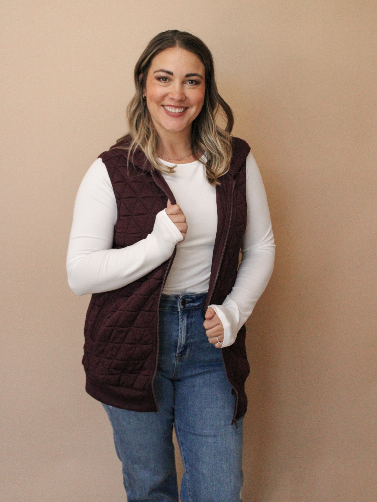 Layer up with the REAGHAN Quilted Zip-Up Vest and stay cozy in style! This playful piece features a quilted knit construction that's perfect for chilly days, complete with a convenient kangaroo pocket to keep your hands warm or essentials close. The attached hood adds an extra touch of comfort and coverage, making it your go-to for effortless, casual vibes. Whether you're running errands or hanging with friends, this vest brings both warmth and personality to any outfit.