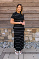 Effortless elegance awaits with the ROZI STRIPED MAXI DRESS. Luxurious, silky-smooth fabric offers refined comfort, while a high side slit allows for easy movement. Crafted with yarn dyed Modal Poly Span Scuba fabric, this maxi t-shirt dress is the perfect combination of style and ease.