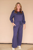 Unleash your playful side in our Ruxin jumpsuit. This versatile piece features a solid knit design, boat neck, and adjustable drawstring for a perfect fit. With side pockets and lightweight scuba knit fabric, comfort meets functionality. Perfect for any occasion. Don't miss it!