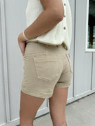 Add some edge and versatility to your wardrobe with our Risen Mid-Rise Front Patch Pocket Shorts. Made with olive denim and featuring convenient front patch pockets, these shorts are a must-have for any fashion-forward individual. Upgrade your style game with these essential shorts.
