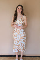 Twirl into elegance with the Stormi Floral Satin Midi Dress! This sassy number hugs your curves with its fitted silhouette while the inverted empire waist and gathering under the bust create a flattering shape. The v-neckline and thick straps offer just the right amount of flirty coverage, while the side slit adds that perfect touch of sass. Zip it up and bloom wherever you go!