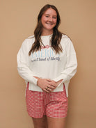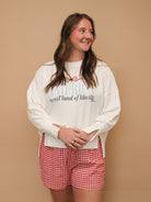 Cozy up in this playful ribbed oversized crewneck that screams comfort and style! The SWEET LAND OF LIBERTY design features a vibrant full-color imprint that pops against the crisp white fabric. Practical side slits add an extra touch of movement and flair, making this the perfect patriotic piece for casual outings or lounging at home.