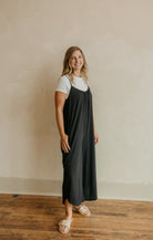 This flared jumpsuit is a one-and-done wonder with adjustable spaghetti straps, a scoop neck, and side seam pockets. Made from textured slub knit fabric, its cropped length and sleeveless design are ready for every adventure.