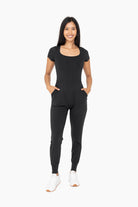 The perfect one piece for on-the-go comfort! This jumpsuit boasts a jogger-style pants, short sleeves, a scoop neck, and convenient hand pockets. Stay stylish and comfortable with this quirky and fun outfit.